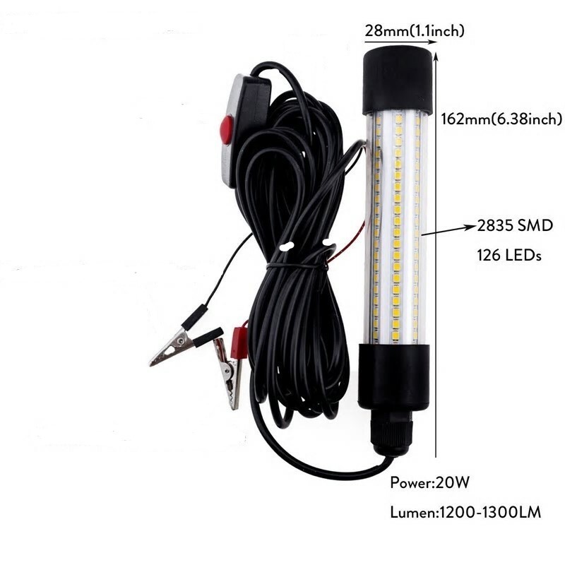 浮力調整オモリフック付 DC12V 126LED 集魚灯 水中ライト (ブルー) 5mコード付き