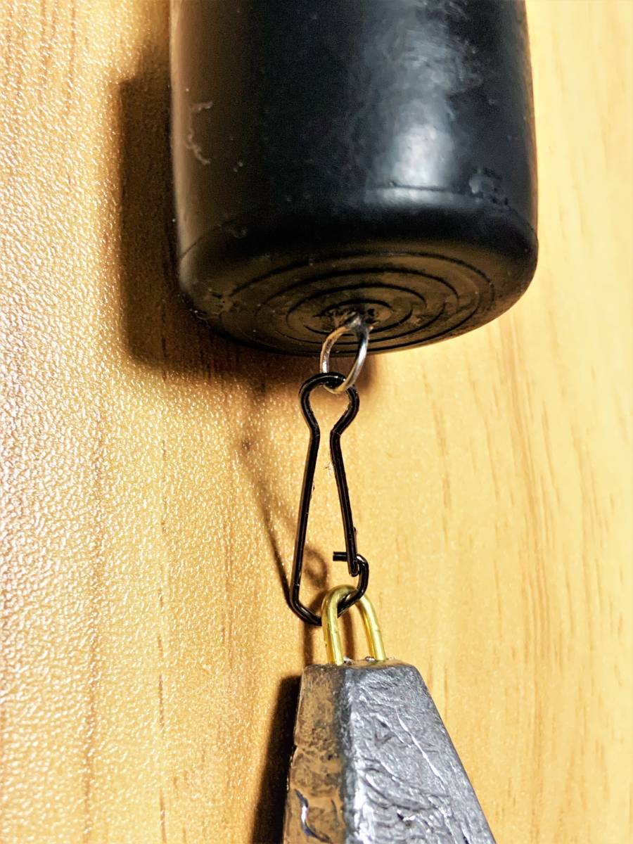 水中に沈ます為のオモリを取り付けるフックを取り付けました。