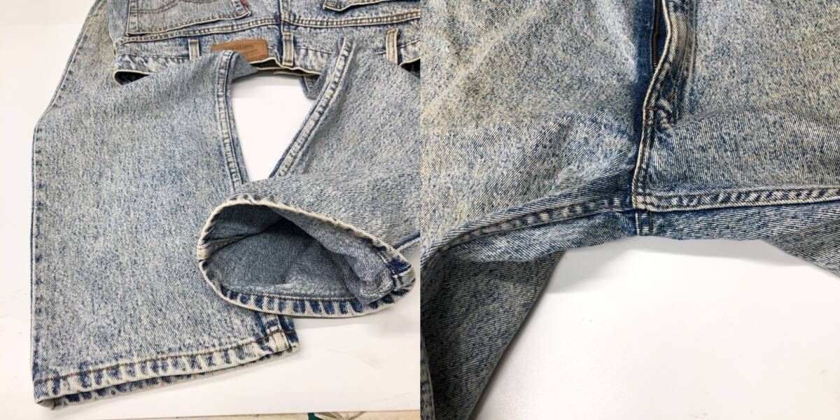 状態…生地に薄シミのような跡があります。(特に膝やポケット付近です。)1度オキシ漬け済みです。