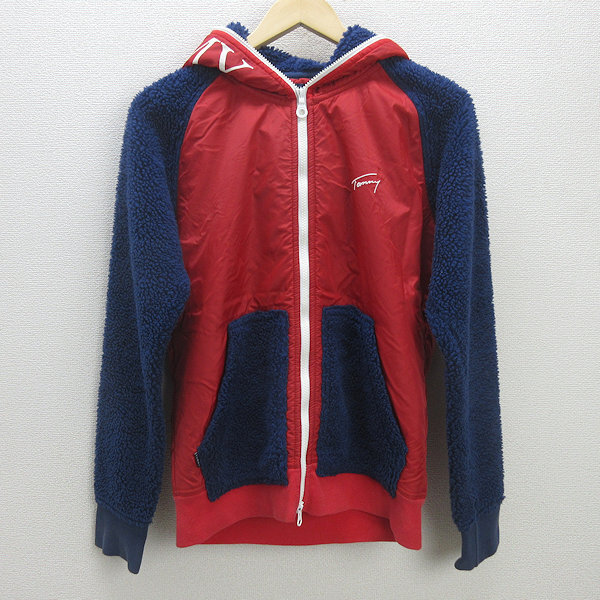 H■トミー/TOMMY 切替 フリースジャケット パーカ【M】赤混/MENS■11【中古】