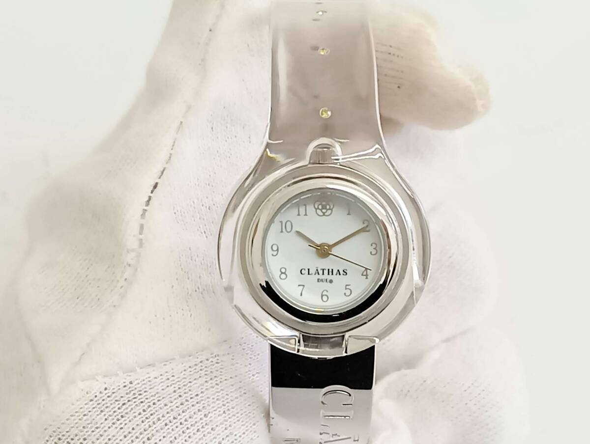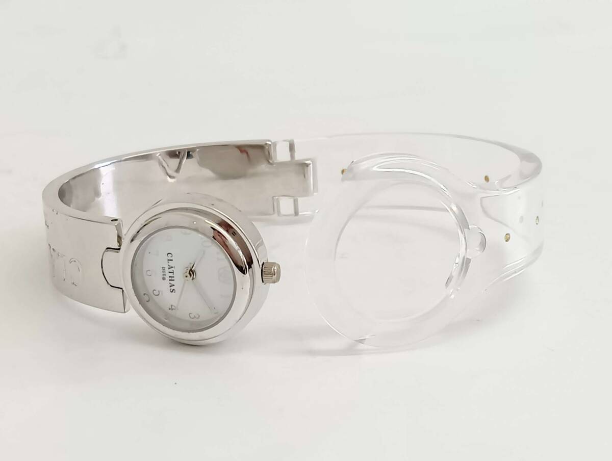 | ☆CLATHAS クレイサス DUE レディース バングル 腕時計 クリアカラー ラインストーン ブレスレット 服飾小物 ケース付属 通電 動作 未確認 |