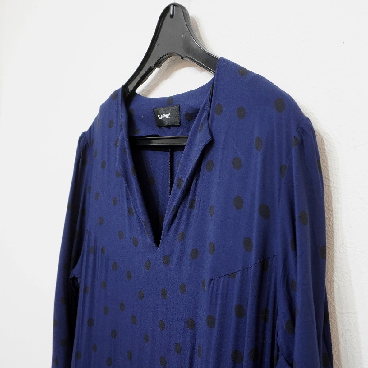 SINME (M) 日本製 レーヨン ドット ティアードロングワンピース シンメ ネイビー J3-76