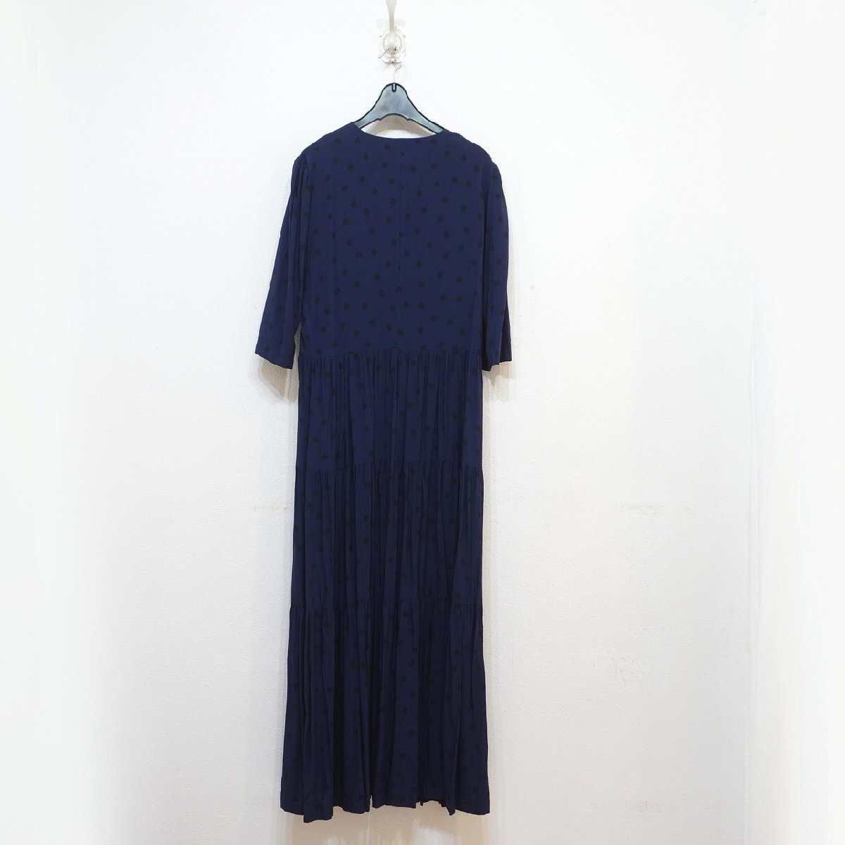 SINME (M) 日本製 レーヨン ドット ティアードロングワンピース  シンメ  ネイビー  J3-76
