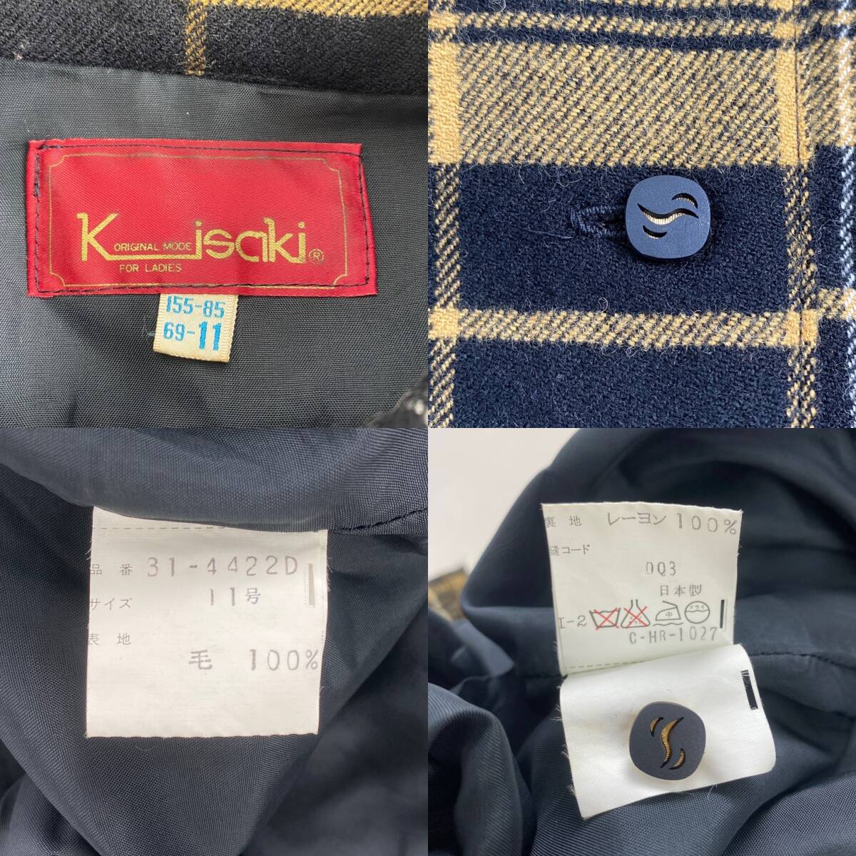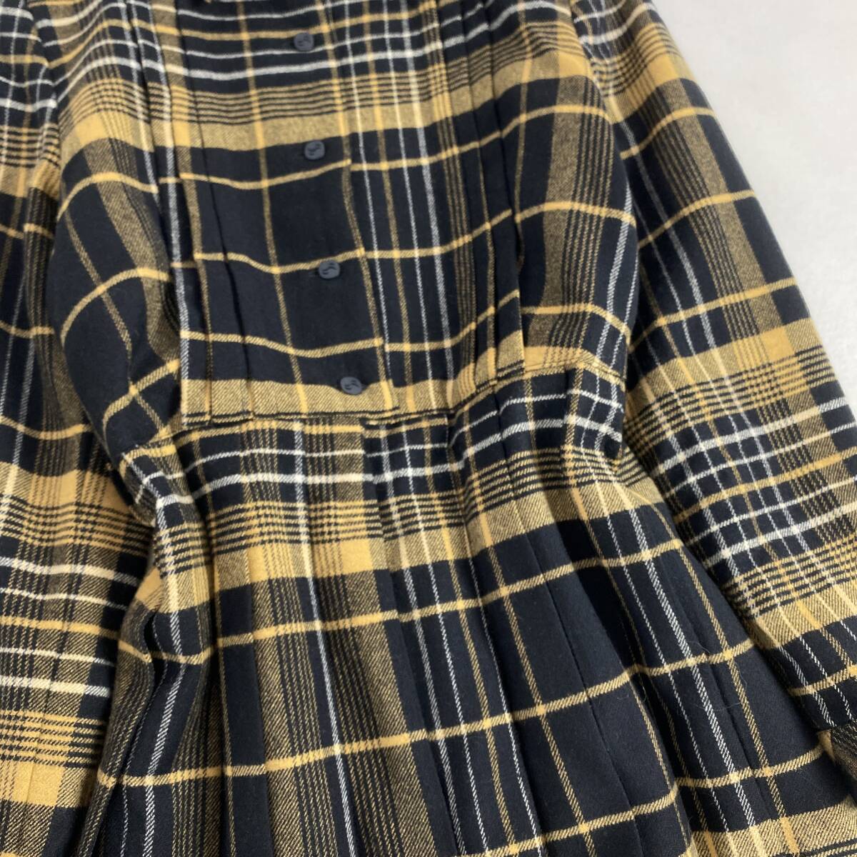 【ポイント】タータンチェック ウール プリーツ 長袖 かわいい レディース 11号 L XL相当