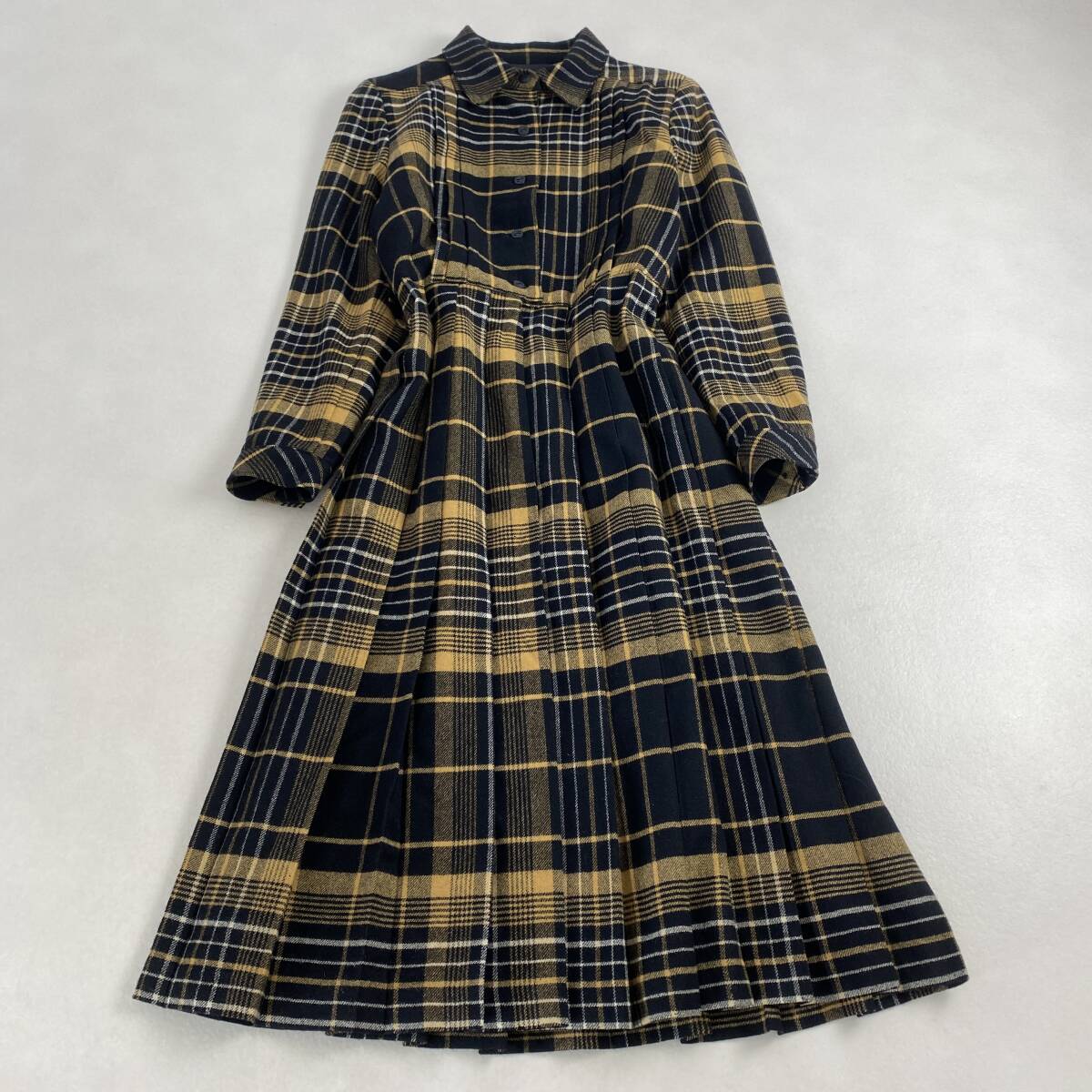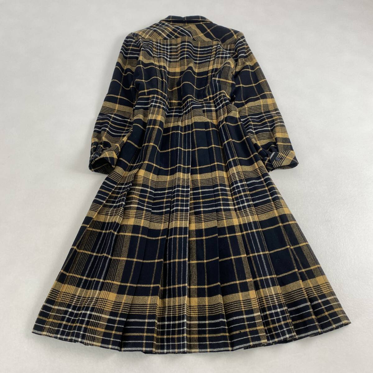 ヴィンテージ ワンピース タータンチェック ウール プリーツ 長袖 かわいい レディース 11号 L XL相当