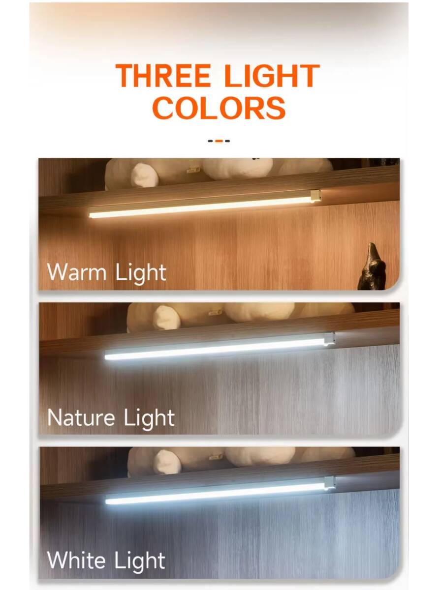 配線不要、3色変化、LEDセンサーライト、30センチ、1本、丸形センサーライト1個付き