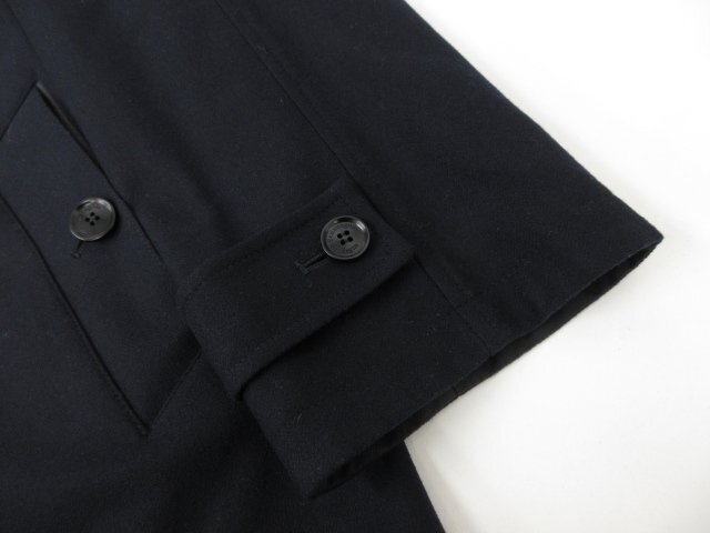 ・カシミア混生地(紺)とポリエステル生地(黒)のリバーシブルのデザインです。表地はうっすらとヘリンボーン柄がデザインされています。