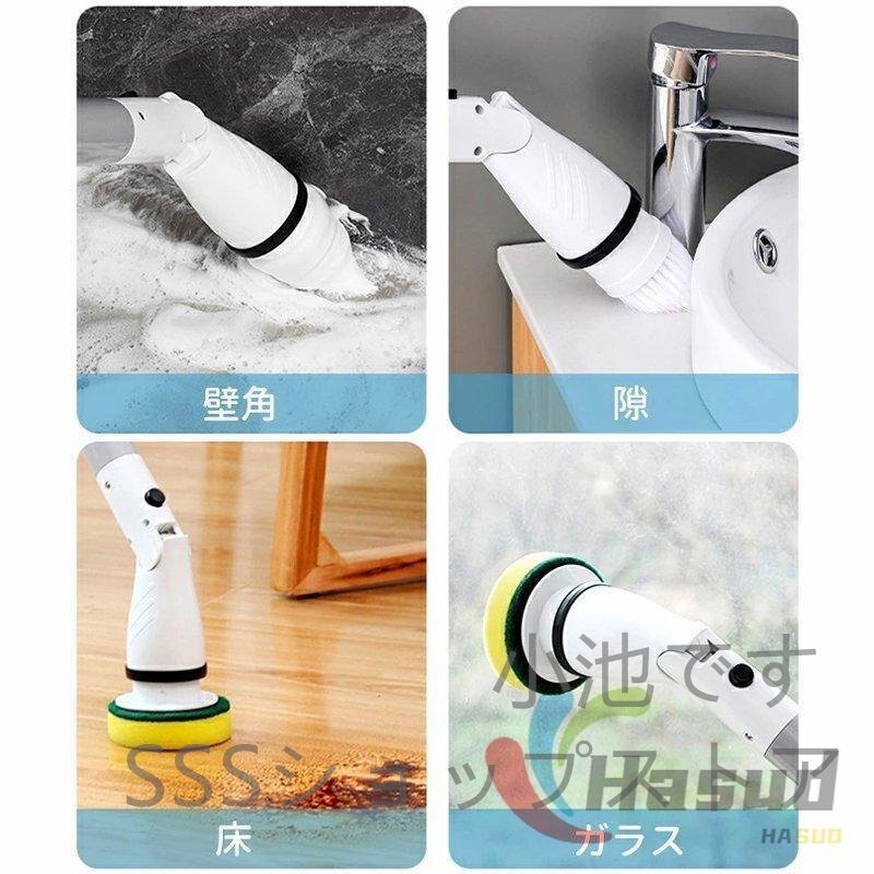 使い分けるブラシ4種類が付いております。掃除したい所によって、ブラシを自由に選択できます!お風呂の掃除だけでなく、キッチン、タイル、床、窓、台所などの掃除も満足します。