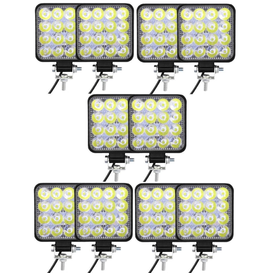 10個セット LED ワークライト 作業灯 48W 12V 24V 6000K 高輝度 防水 照明 車 四角 吊り下げ アウトドア 汎用 交換 カスタム 純正互換品