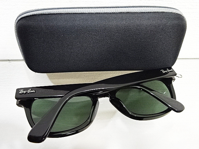 右テンプルに「B&L RAY-BAN USA」、左テンプルに「FRAME FRANCE LARAMIE」の刻印があります。