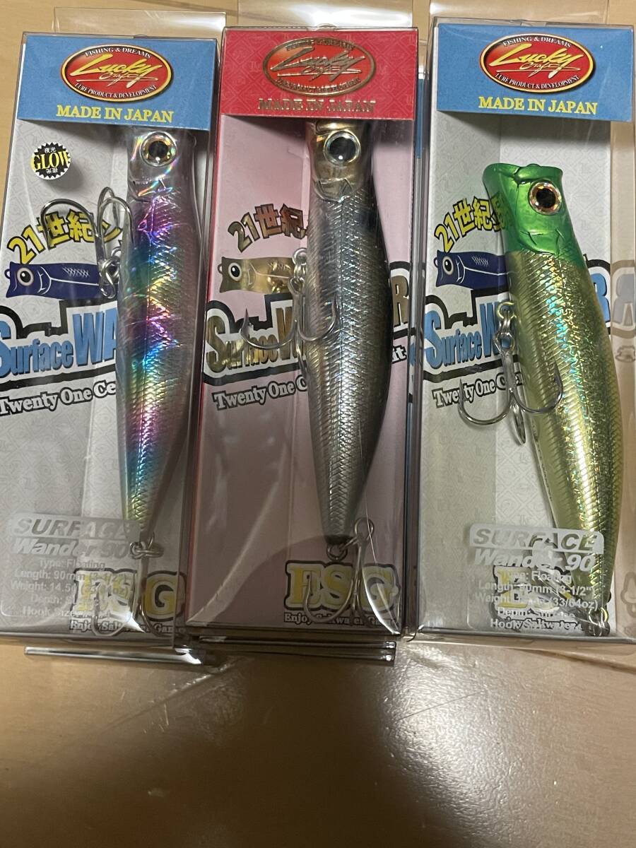 ラッキークラフト▲サーフェスワンダー90▲レーザーグリーンヘッドチャート& アンチョヴィーナス&キャンディーグローピーチ▲シーバスに 定価1760円