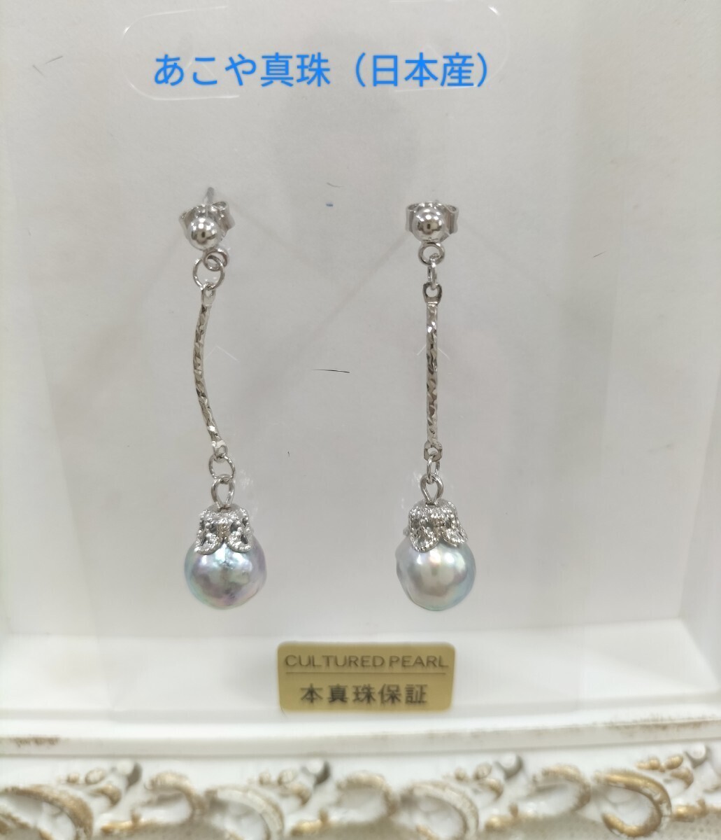 こちらは、あこや本真珠(日本産)のピアスでございます。