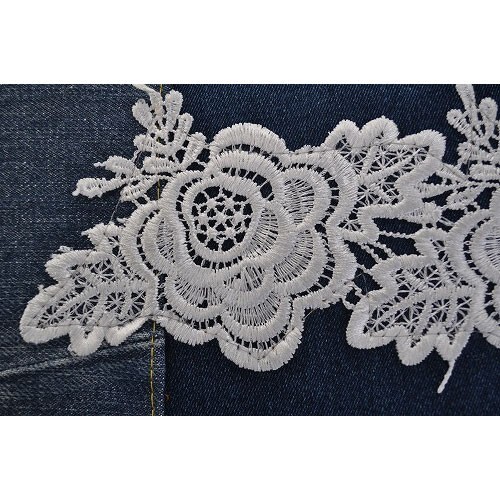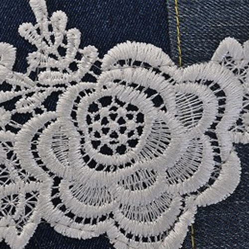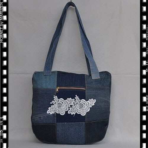 デニムバッグに中古のレースをコラージュした品です
