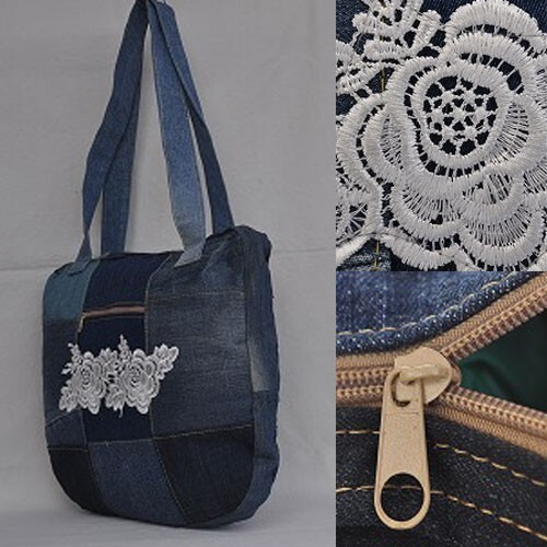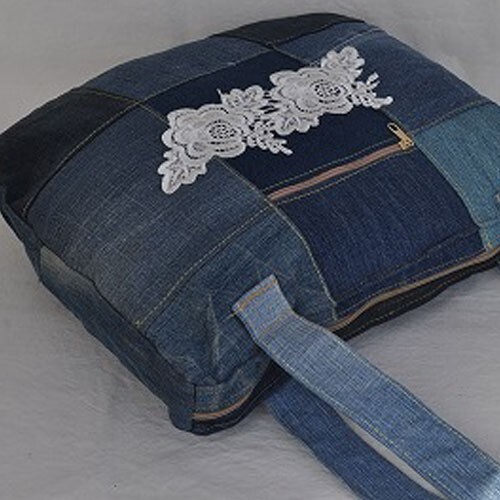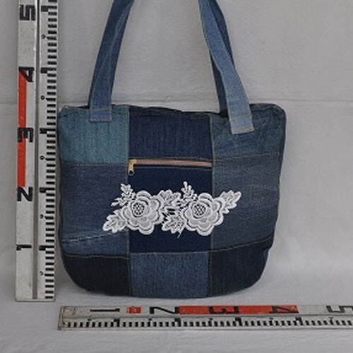 リ・サイクルデニム(中古デニム)と中古レースをバッグにアップサイクルされた商品ですので