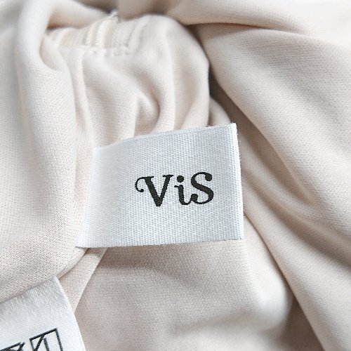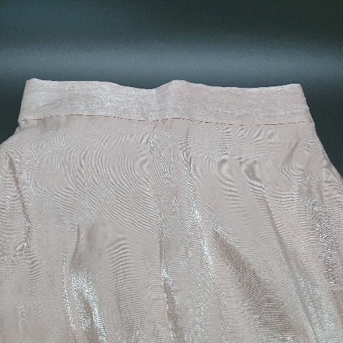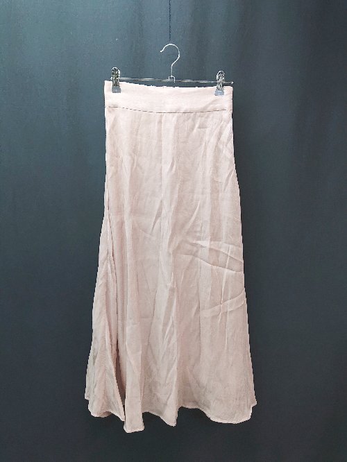 ◇ VIS シャイニー素材 ウエスト後ろゴム 裏地あり ロング丈 フレア スカート サイズS ベージュ レディース E