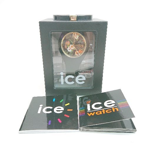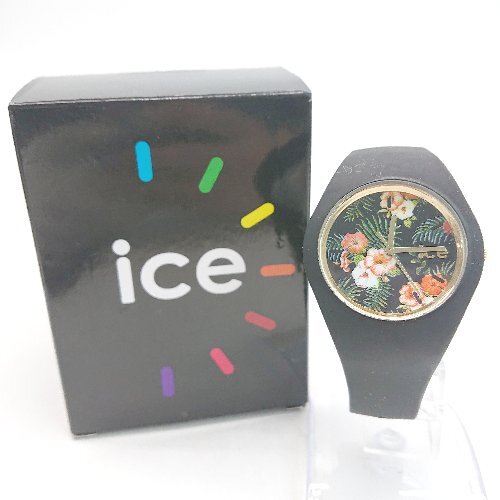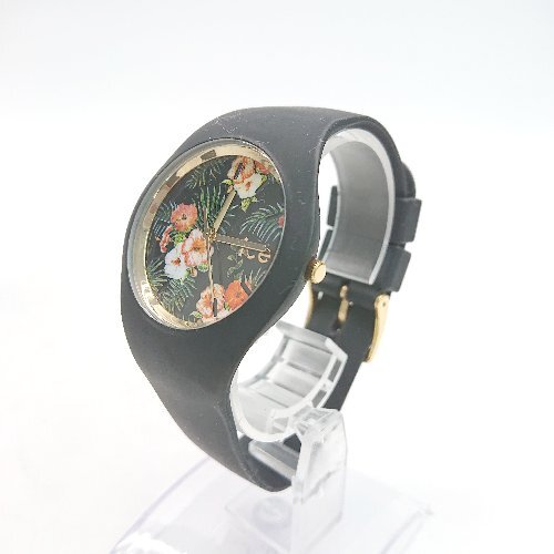 ◇ ICE-WATCH 動作未確認 3針 クオーツ式 花柄 ラバーベルト 腕時計 ウォッチ ブラック サイズ- レディース メンズ E