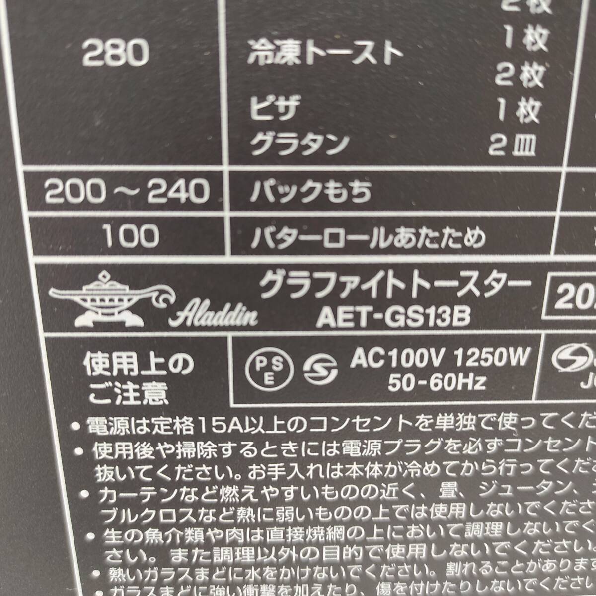 ●動作品 アラジン AET-GS13B グラファイトトースター Aladdin ブラック 2枚焼き 温度調節機能 2020年製 キッチン家電 L1455