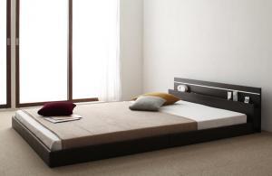 モダンライト・コンセント付き国産フロアベッド 国産ボンネルコイルマットレス付き ダブル