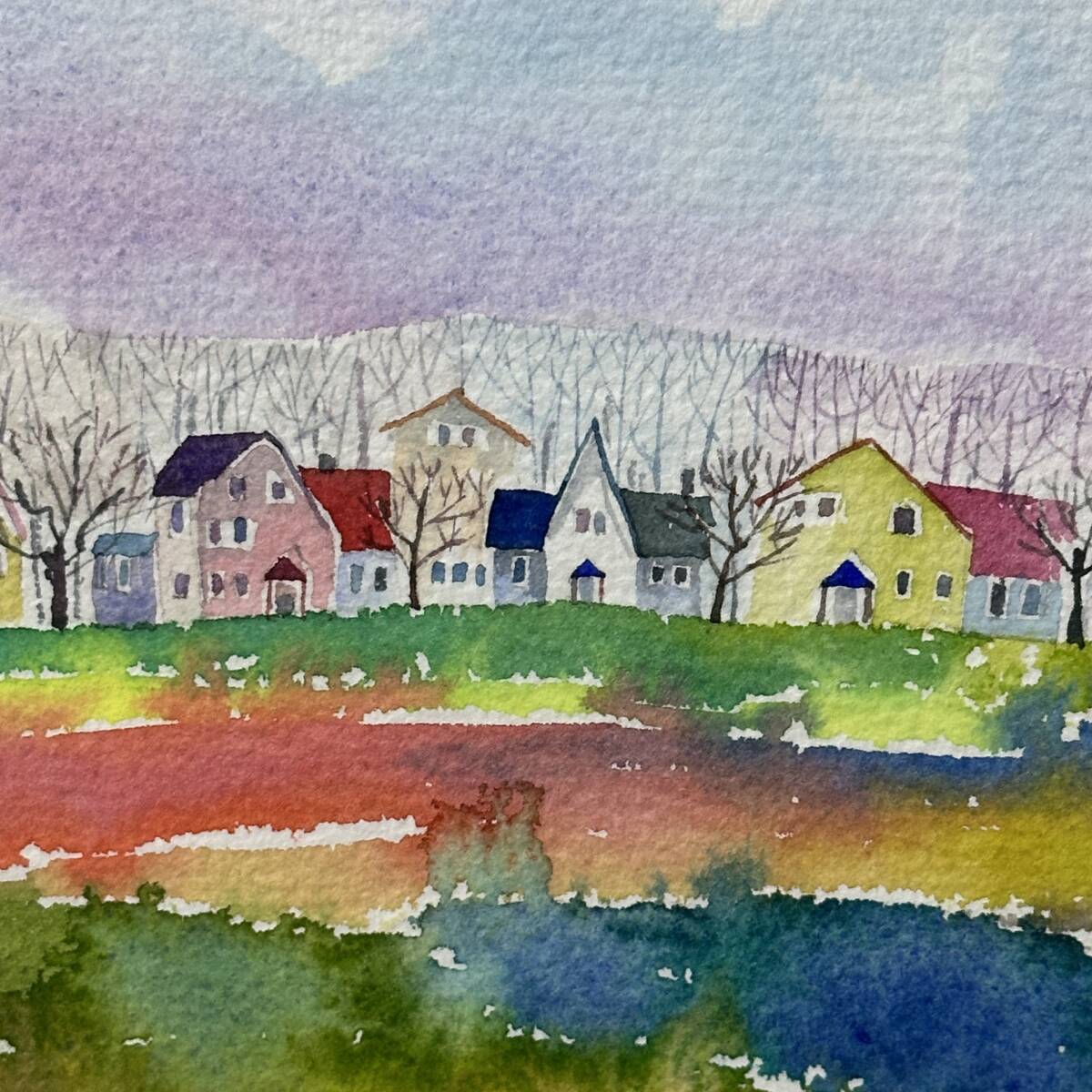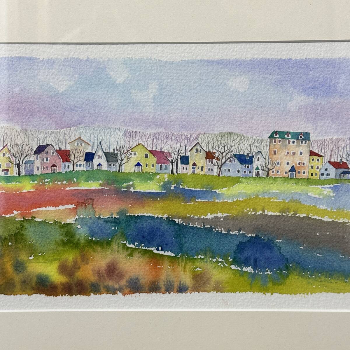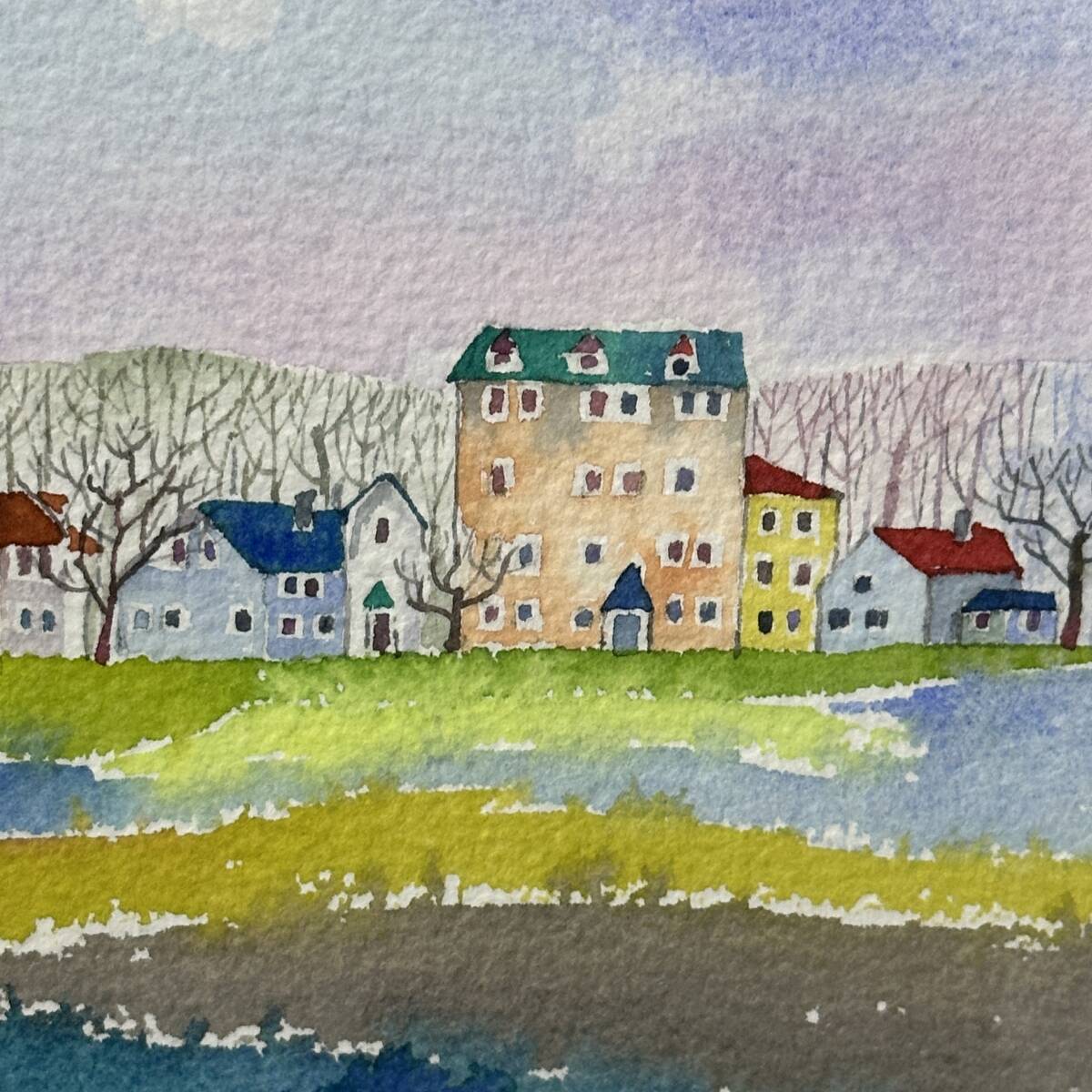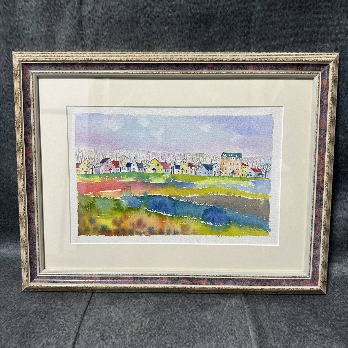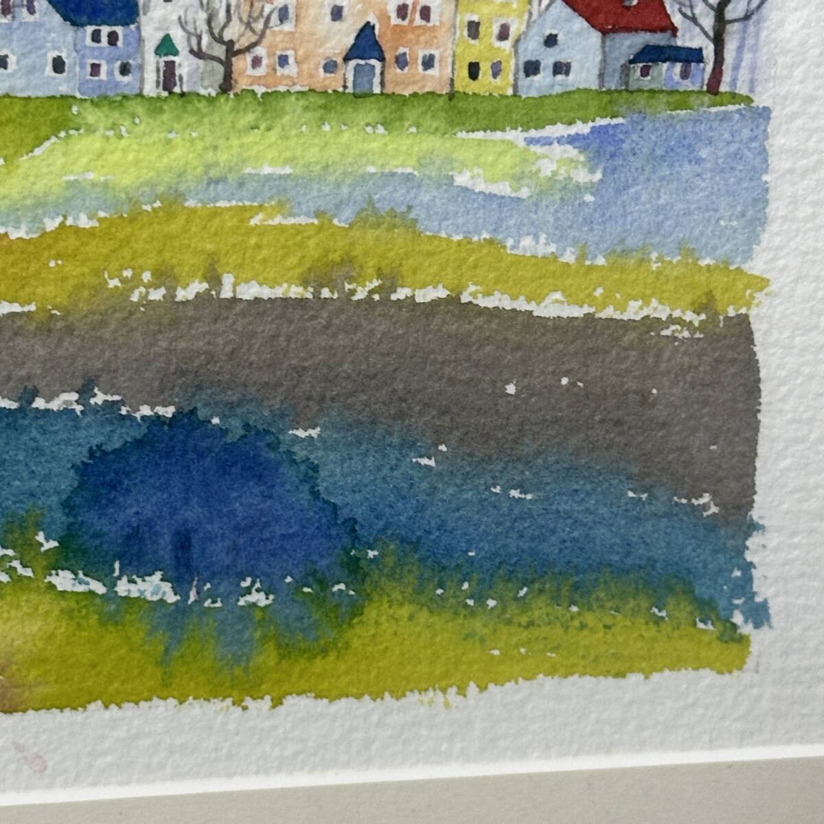 商品名:【真作】井手孝「風景A」水彩画 額寸 38.5cmx29.5cm 風景画 街並み