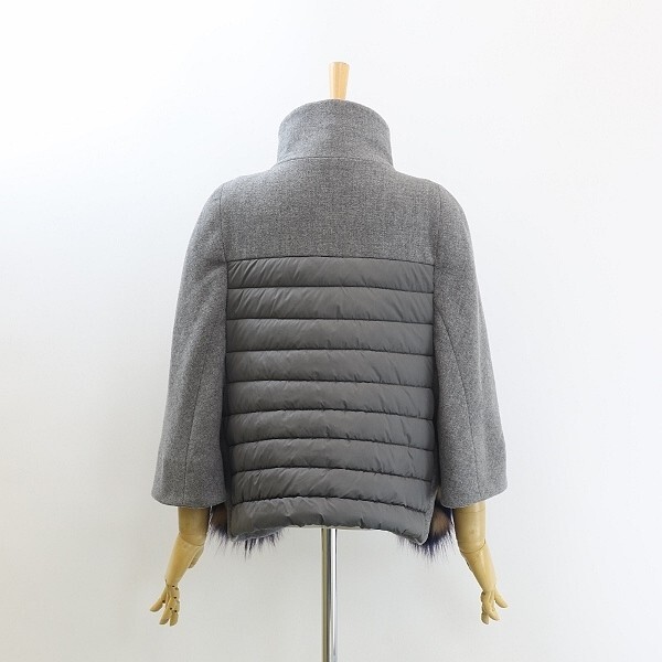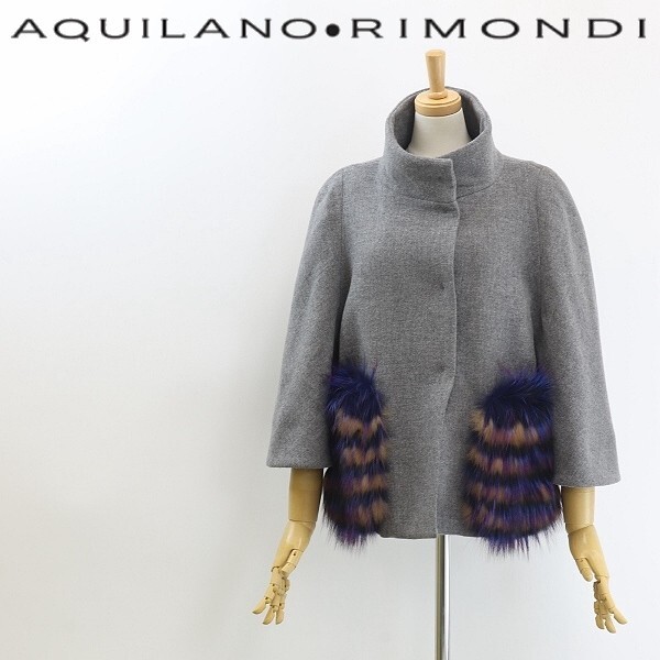| ◆AQUILANO RIMONDI アキラーノ リモンディ フォックスファーポケット ウール 切替 七分袖 中綿 ショート コート グレー 40 | |
