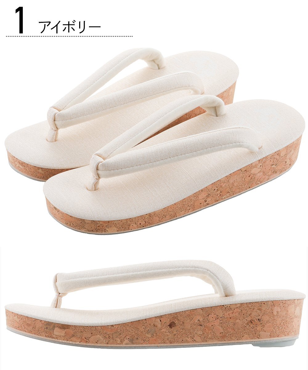 ■日本製■montado モンタード コルク 草履 お洒落 ソフト鼻緒 一枚芯 無地 ku-2 (1アイボリー) Lサイズ 【カジュアル 紬 小紋 着物 和装】