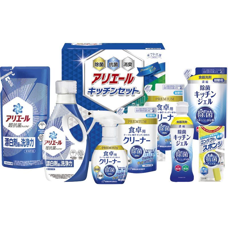 【セット内容】食卓用クリーナー詰替用(250ml)×2、P&Gアリエールジェル(720g)・P&Gアリエールジェル詰替用(405g)・食卓用クリーナー(260ml)・除菌キッチンジェル(200ml)・除菌キッチンジェル詰替用(160ml)・コンパクトスポンジ×各1