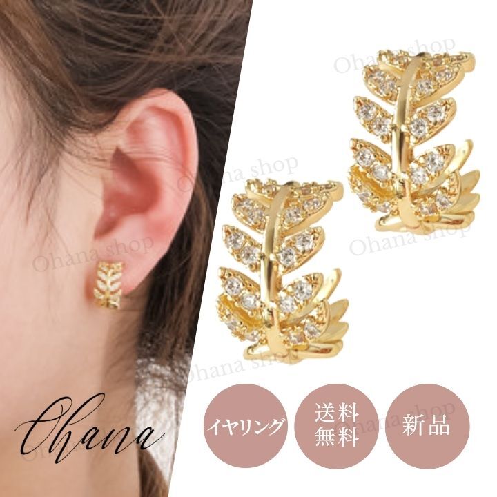 #304 リーフ フープイヤリング ゴールド 大人 可愛い 上品 おしゃれ フォーマル 華やか カジュアル きれいめ ギフト レディース