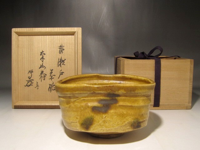 時代ある 黄瀬戸茶碗 南山寿です。 時代を感じる見事な出来栄えの作品です。 武者小路 官休庵十三代有隣斎花押があります。