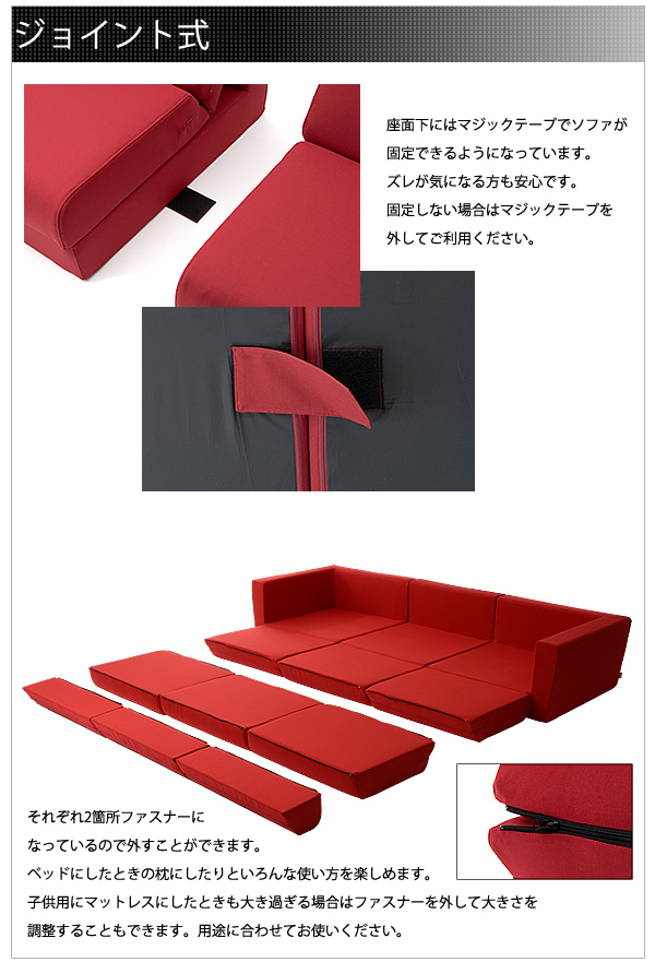 ジョイント式で増やして3人掛け以上のソファにすることもできるワイドソファ。