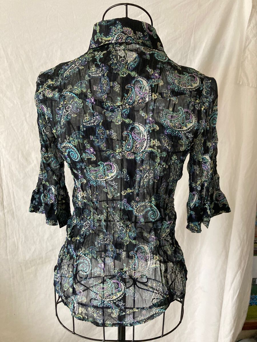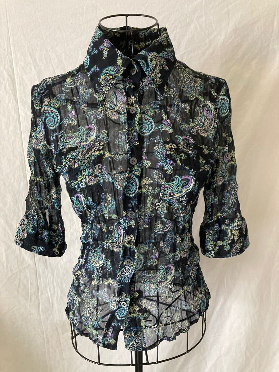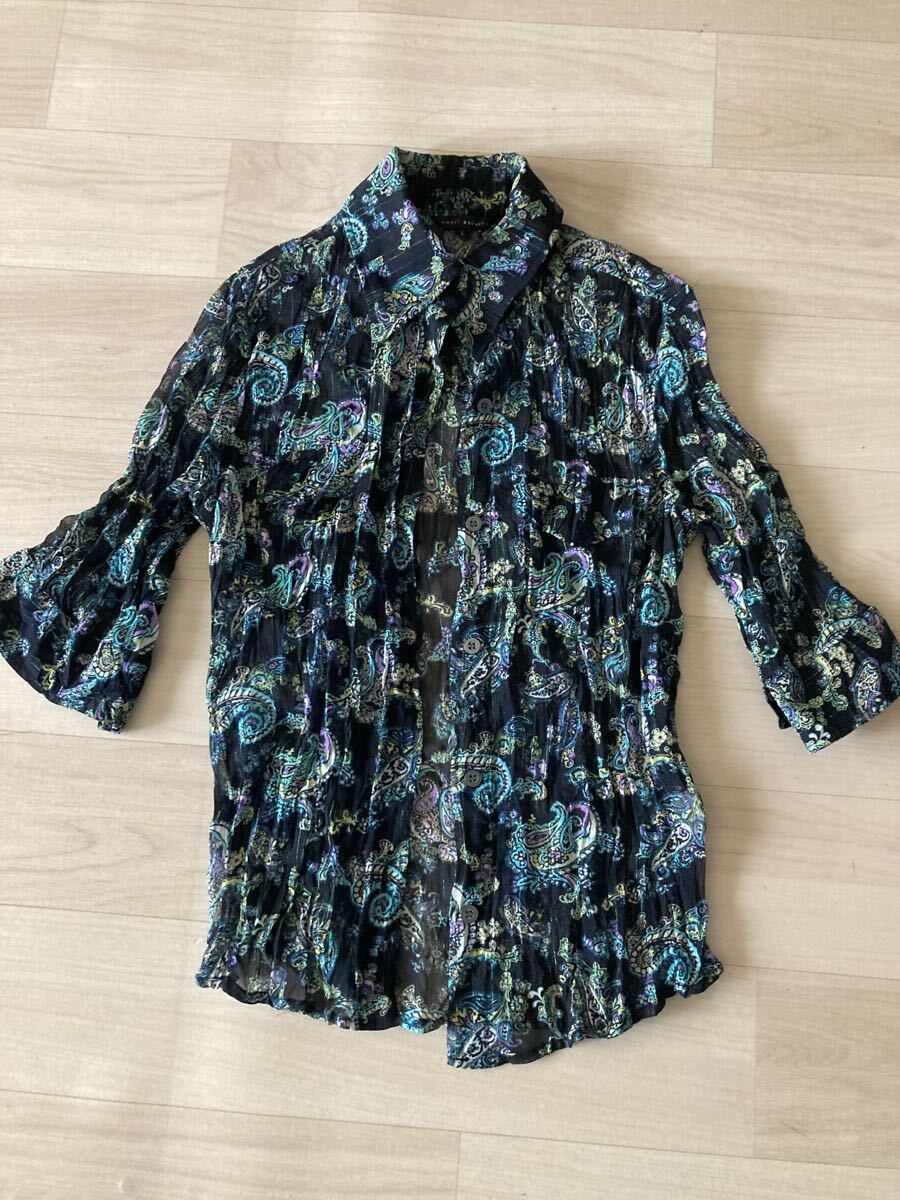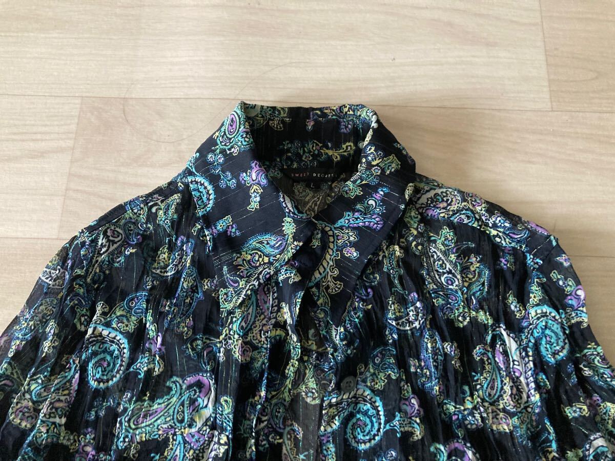 sweet degreesシースルーの花柄シャツ、フレアスリーブ付き。