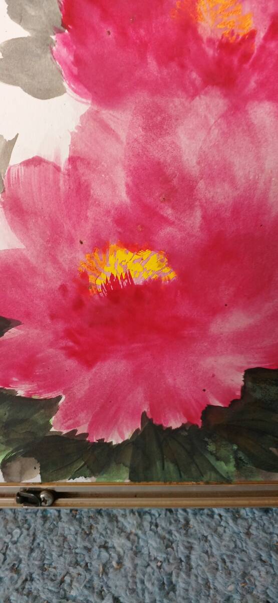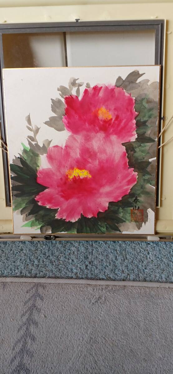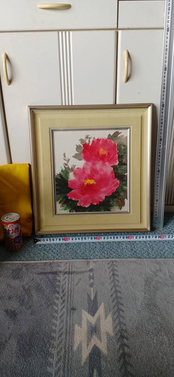 ★水彩画★色紙★久保春山★牡丹★真筆証明書あり★サイン・落款あり★美術年鑑評価額8万円★額装★黄袋付き★古美術★インテリア★アンティーク★