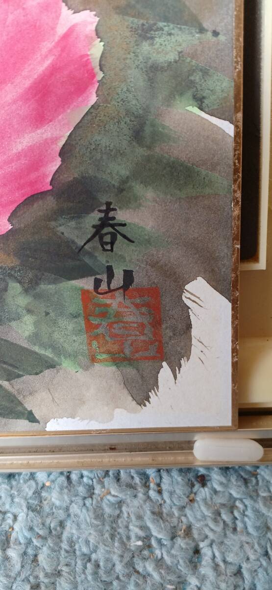 ★水彩画★色紙★久保春山★静物画★牡丹★真筆証明書あり★サイン・落款あり★美術年鑑評価額8万円★額装★黄袋付き★古美術★