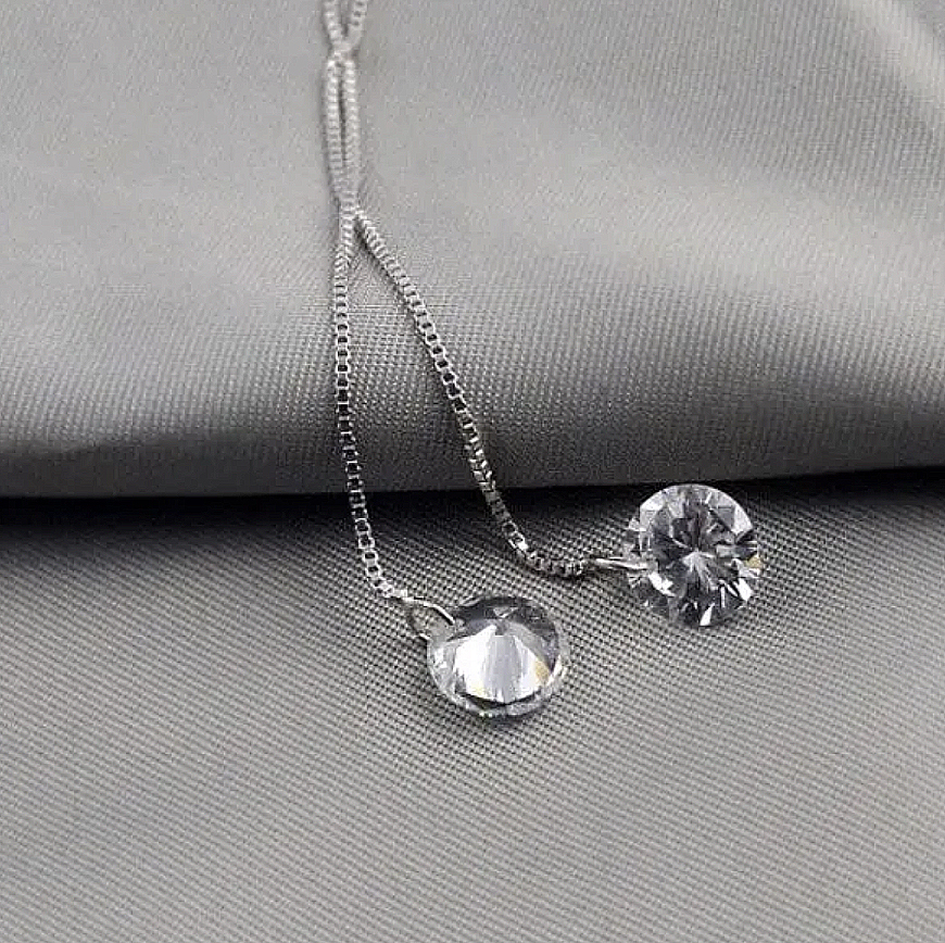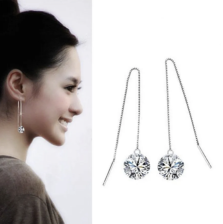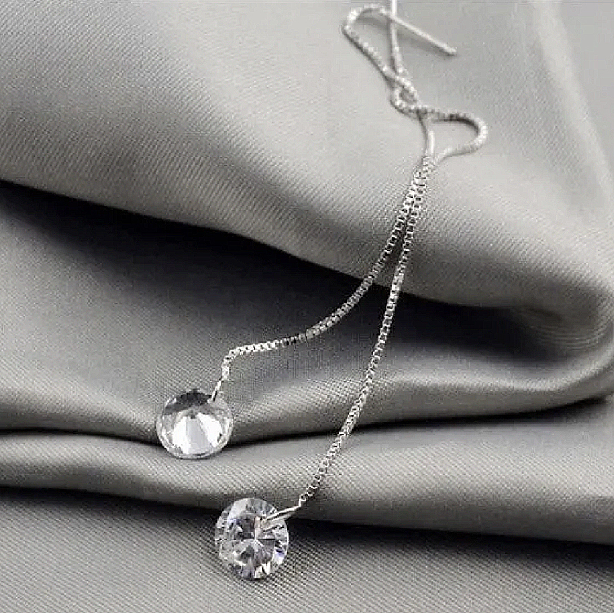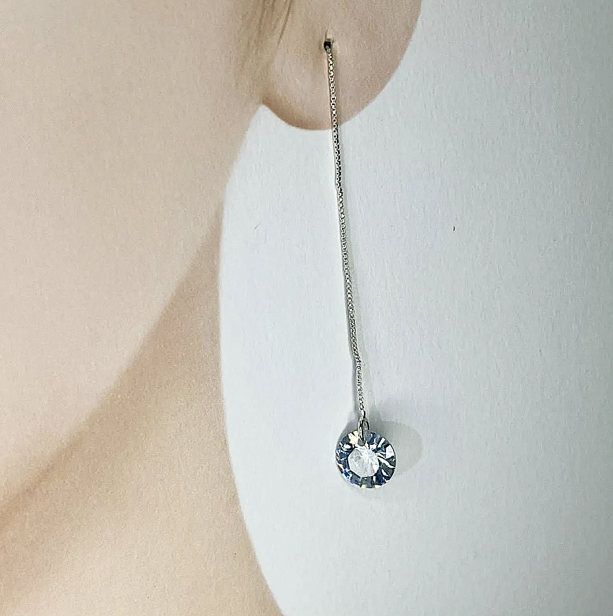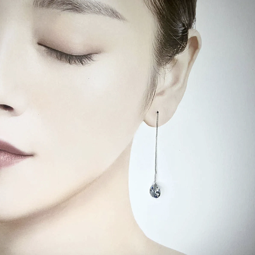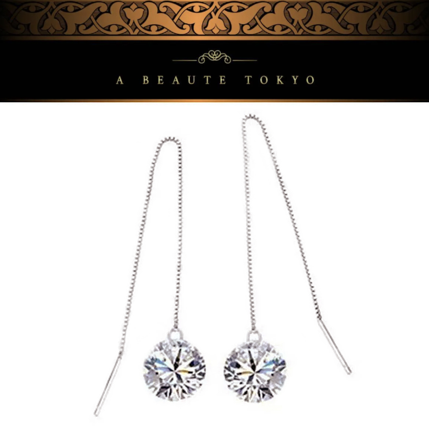 最高峰のCZダイヤモンドを使用したひと粒ロングピアスです。