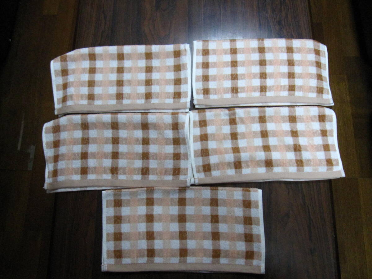 ハンドタオル 新品 5枚 チェック 柄 模様 格安 男女 兼用 春 夏 秋 冬 激安 まとめて セット 可愛い 綿 祝い インテリア 家庭 ブラウン