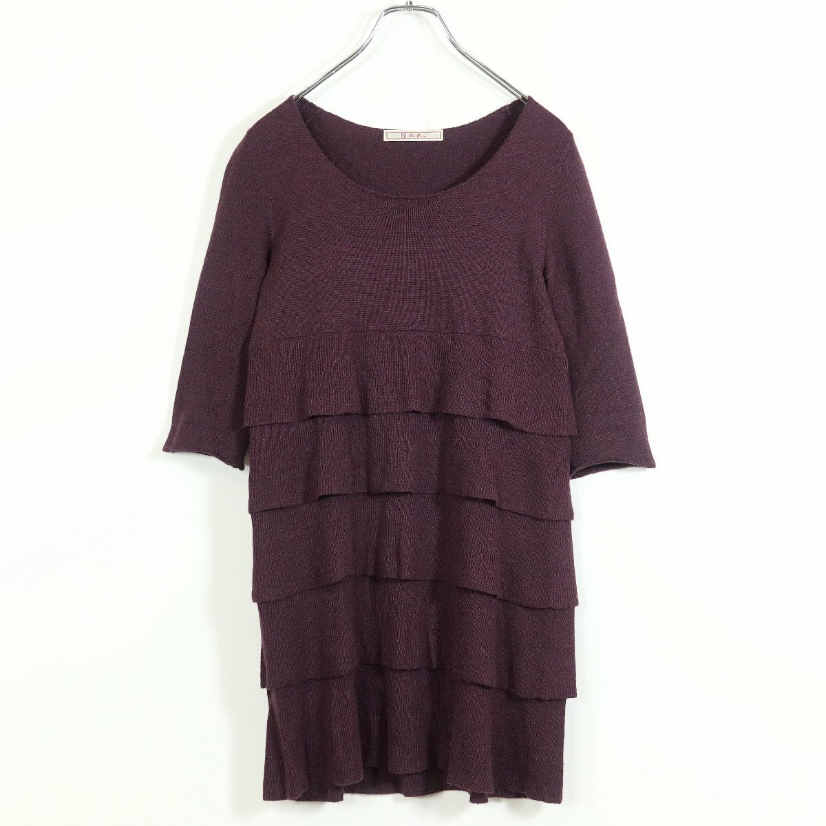 Ph Blue ペーハ-ブルー ピンクハウス★ニットワンピース パープル系 かぶせ段々フリル z11550