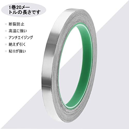 ・長さ20m×幅10mm×厚さ0.1mm ・・Color:長さ20m×幅10mm×厚さ0.1mm・【仕様】サイズ:長さ20m×幅10mm×厚さ0.1mm。材質:アルミ箔、導電性アクリル系粘着剤。色 :シルバー。・【両面導電性アルミテープ】アルミ箔+導電性粘着剤の構成で完全導電性を確保。貼るだけで粘着面とアルミテープ表面が導電します。・【耐熱アルミテープ】高い強度を持ち、耐熱温度300℃まで使用できます。車やバイクのマフラー・煙突・電気配線など、高温な場所の修理やメンテナンスなどに使えます。・【静電気除去アルミテープ】細かく切っていろんな場所にアルミテープチューンで使用できます。車のバンパーやドアガラスなどに貼ることで、静電気を除去して走行を安定させる作用もあります。・【適用場所】製品に貼ってコードの端子として。電磁波などの電波シールドに。キッチンのすき間、金属屋根、外壁など、屋内、屋外の防水、シール。アルミ箔粘着テープは柔軟性に優れ、巻き付け作業や打ち抜き加工にも適します。