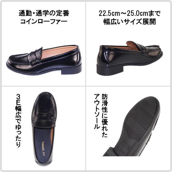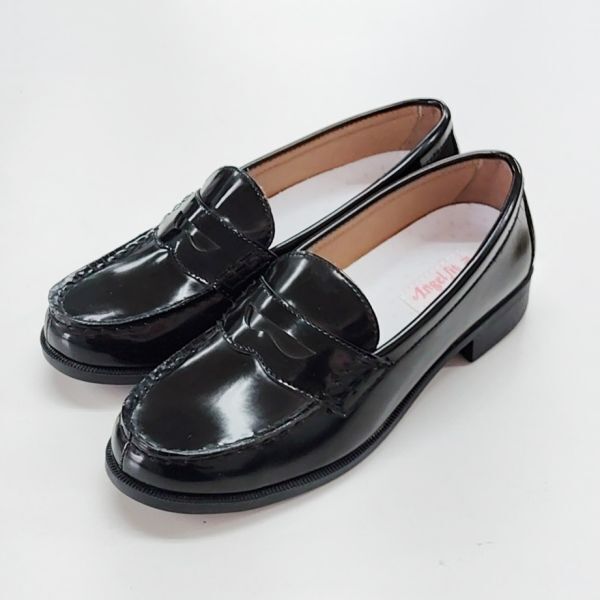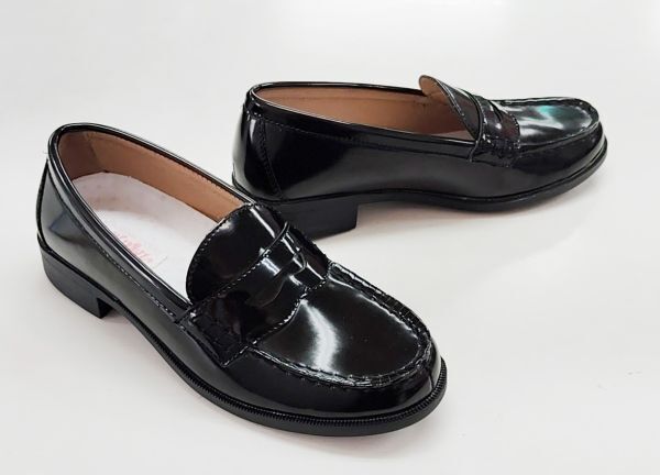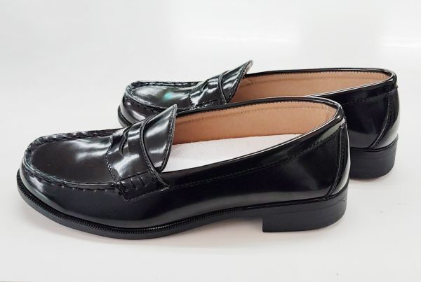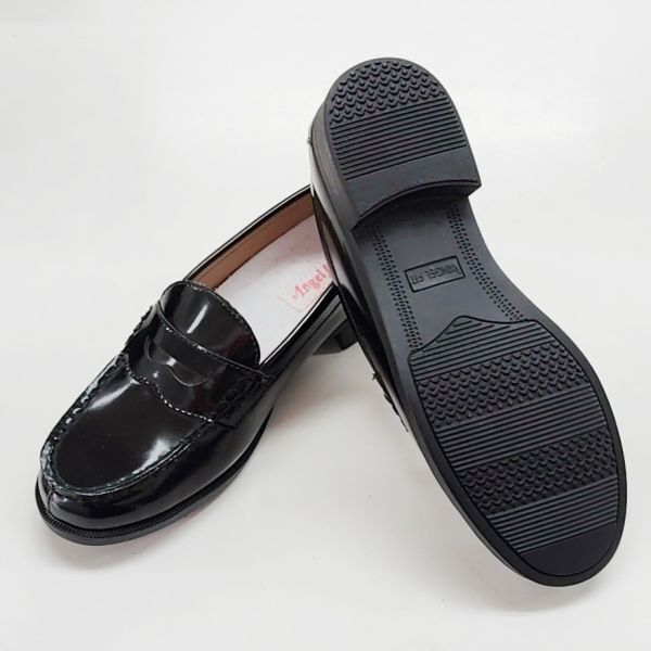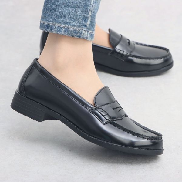 B品 レディース ローファー 23.5cm カジュアル ビジネスシューズ エナメル調 PUレザー 通勤 通学 学生 ブラック af_20475 ①