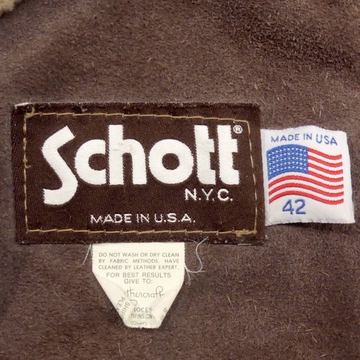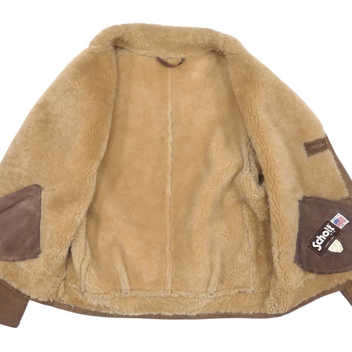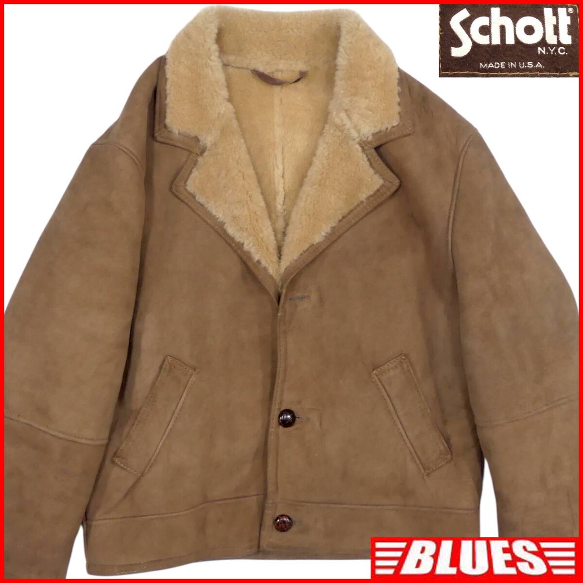 即決★アメリカ製 Schott★メンズ XL ムートンコート ショット 42 茶 キャメル 本革 90s ヴィンテージ 本皮 レザー 羊革 ラム 検索:B3