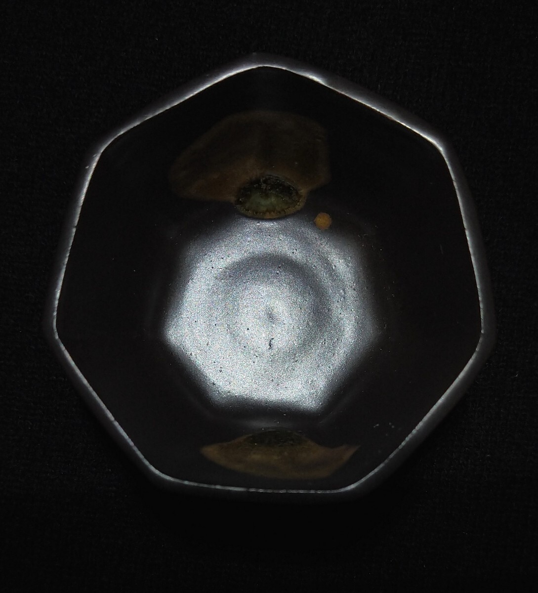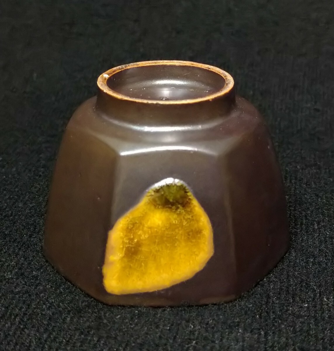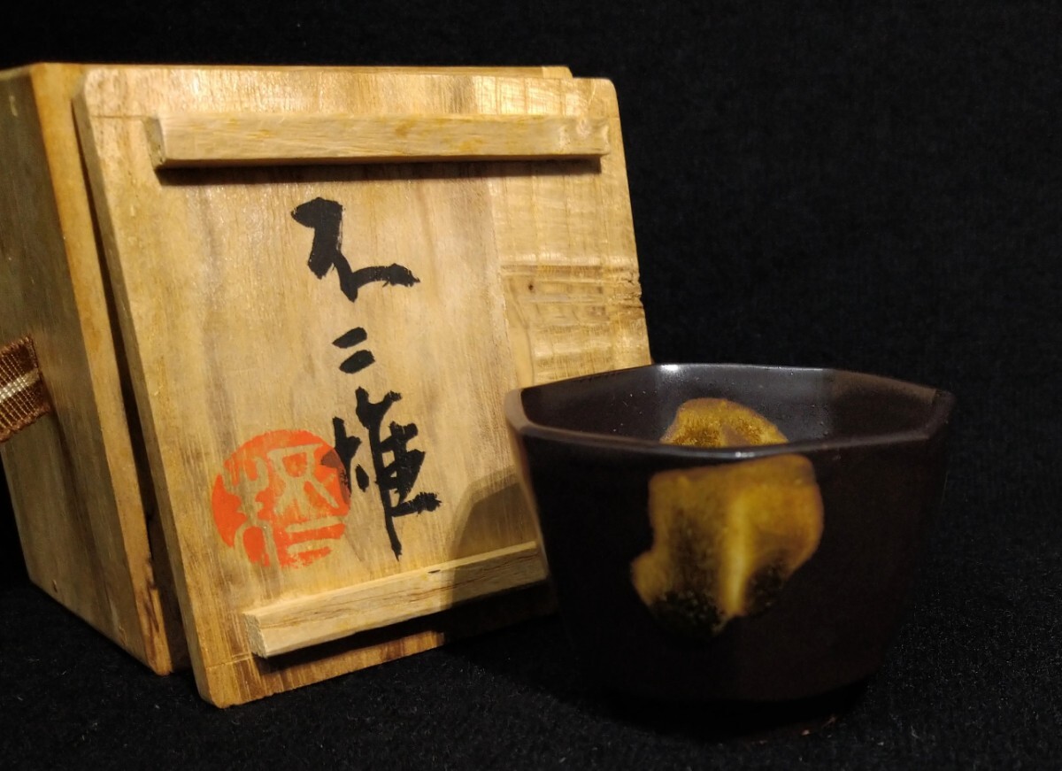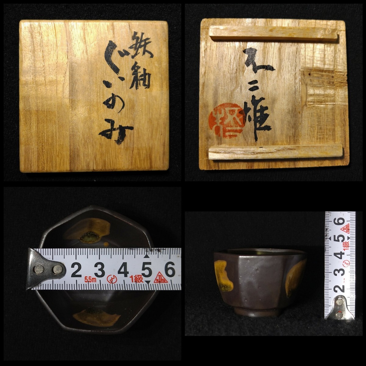伝統とモダニズムの融合に尽力された、北出不二雄(1919-2014)先生の洗練された酒器でございます。素人採寸で申し訳ございませんが、径5.8cm、高さ4.1cmでございます。