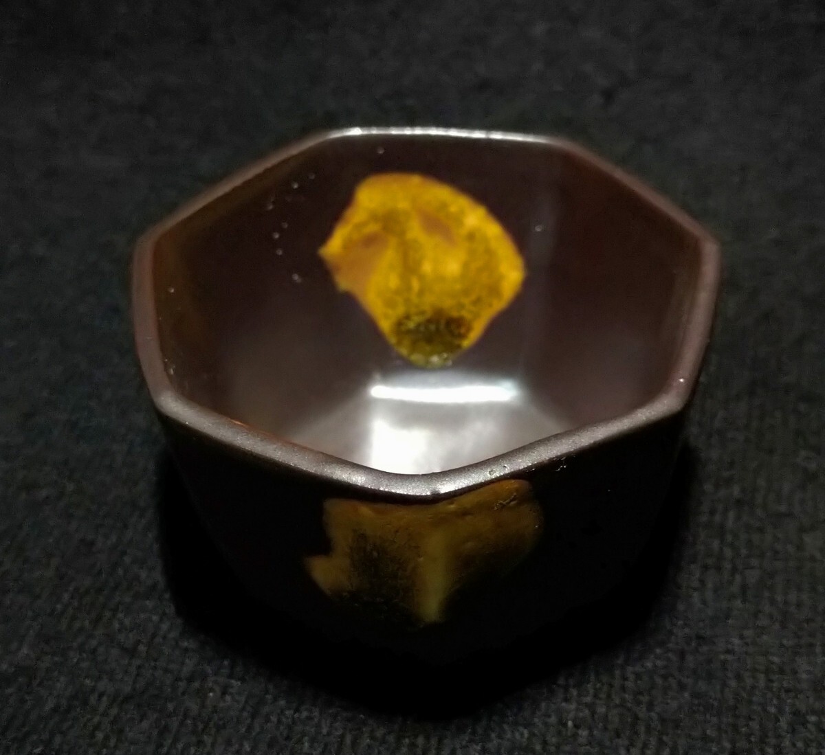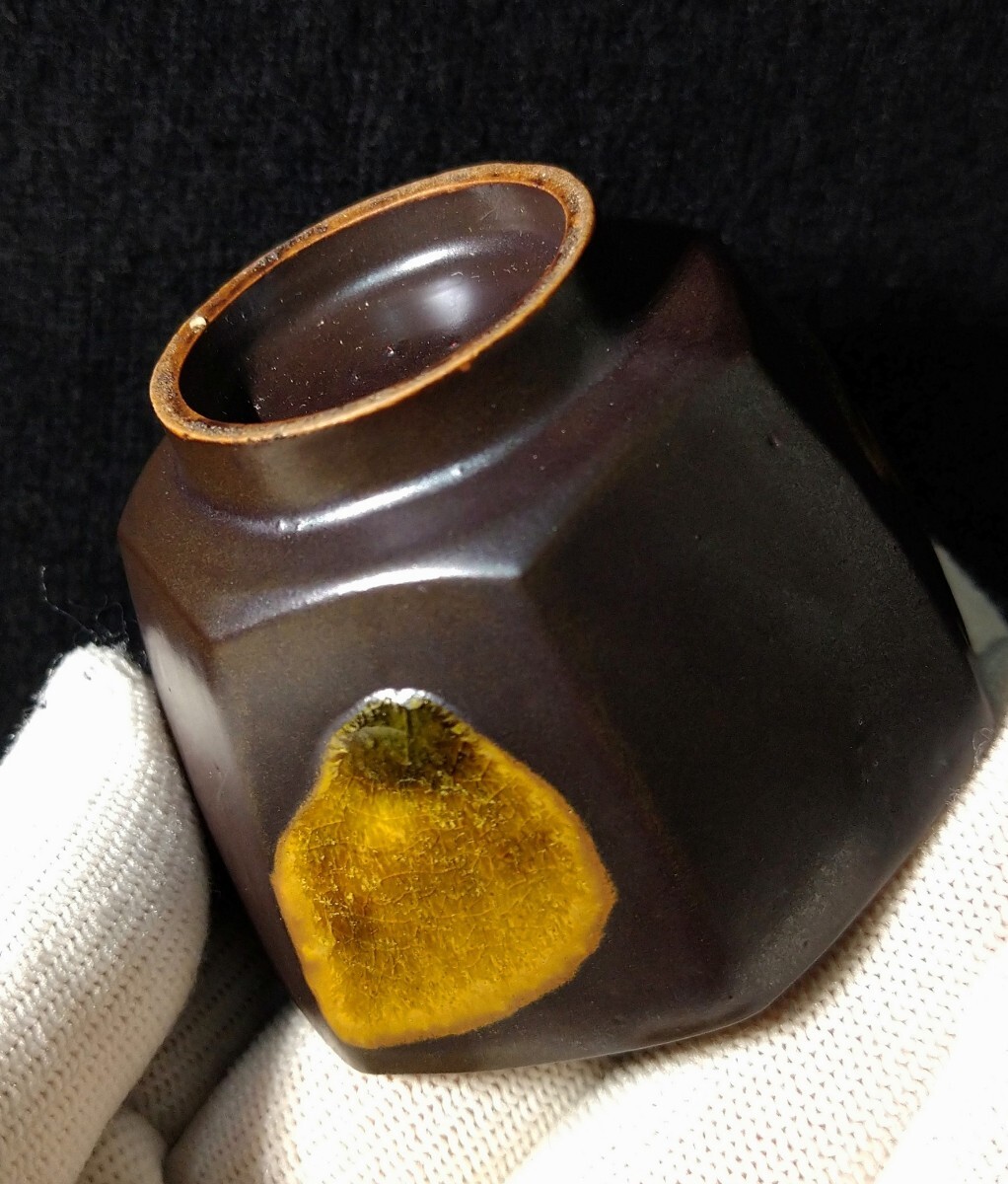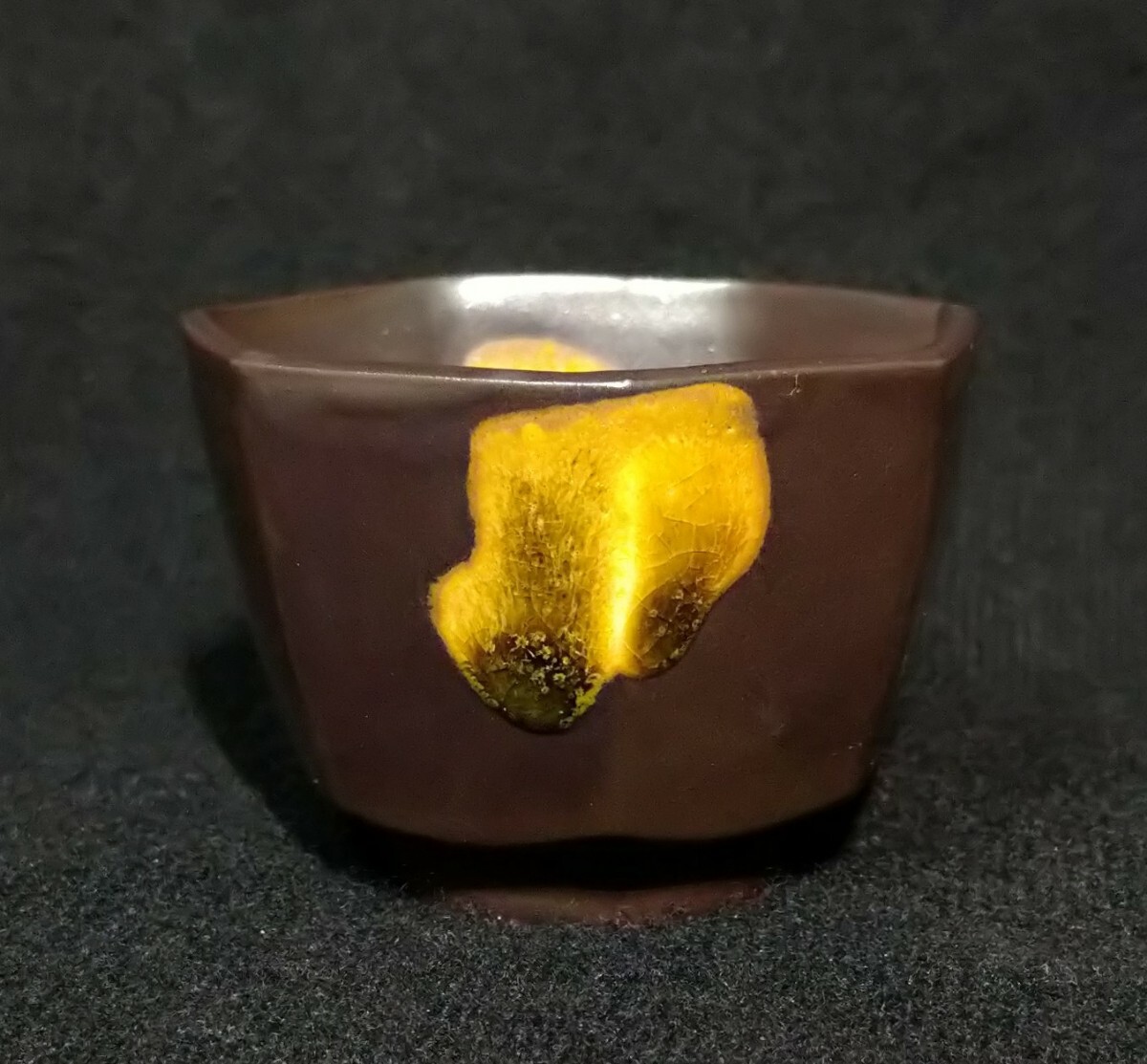 伝統とモダニズムの融合に尽力された、北出不二雄(1919-2014)先生の洗練された酒器でございます。素人採寸で申し訳ございませんが、径5.8cm、高さ4.1cmでございます。