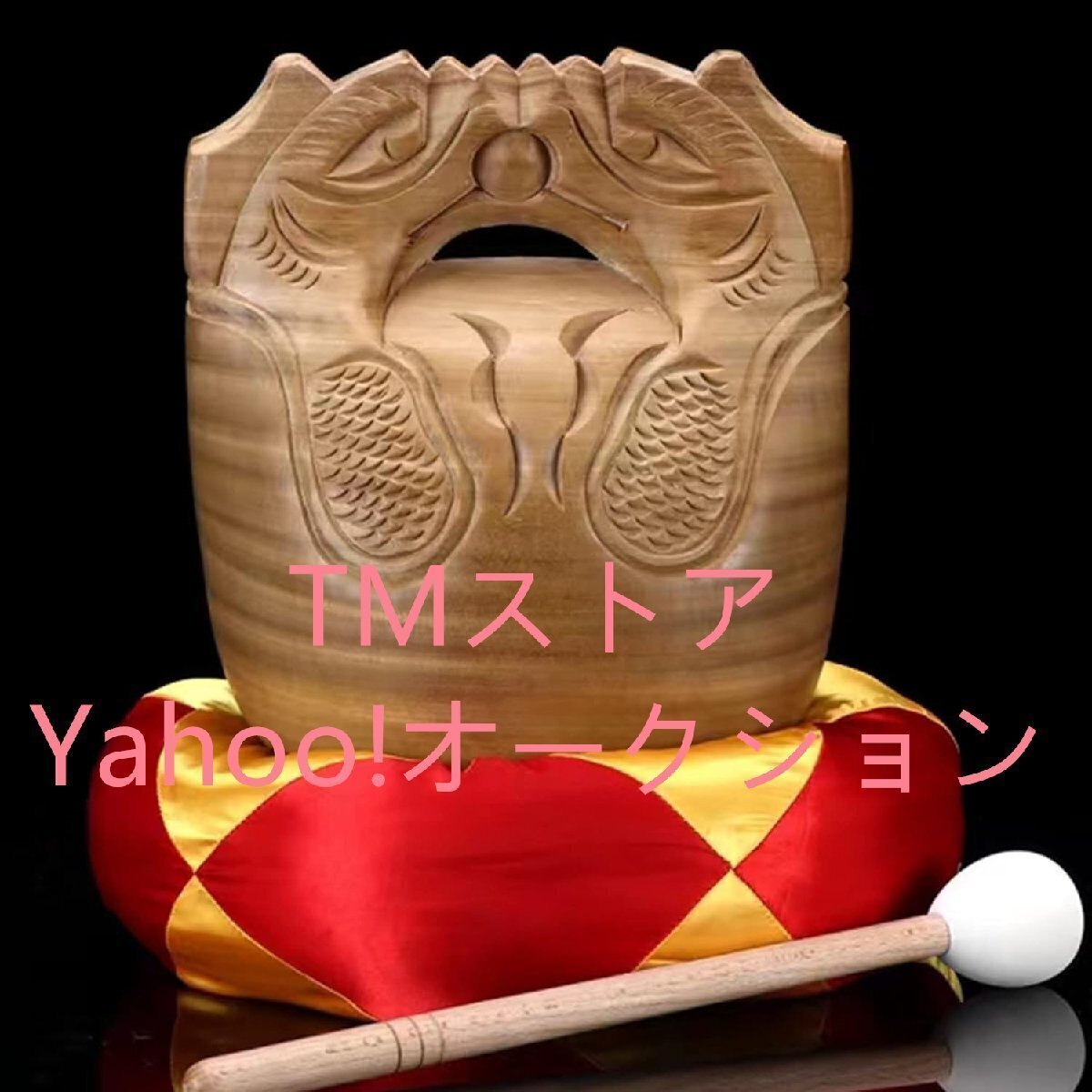 高品質★木魚3点セット 七寸 220ミリ 仏具 「龍彫り」布団 バイ 座布団 バチ