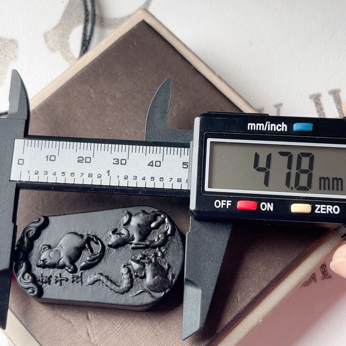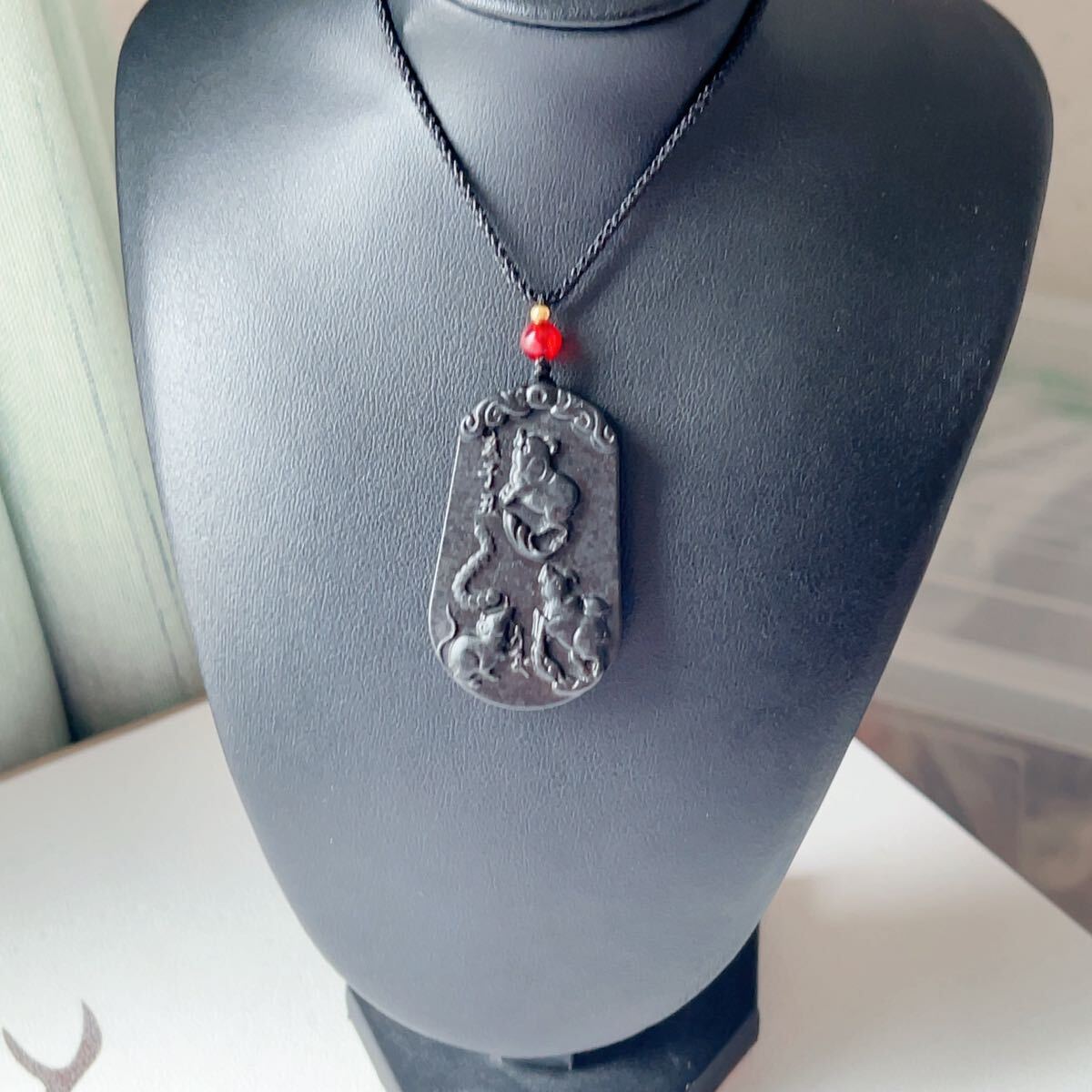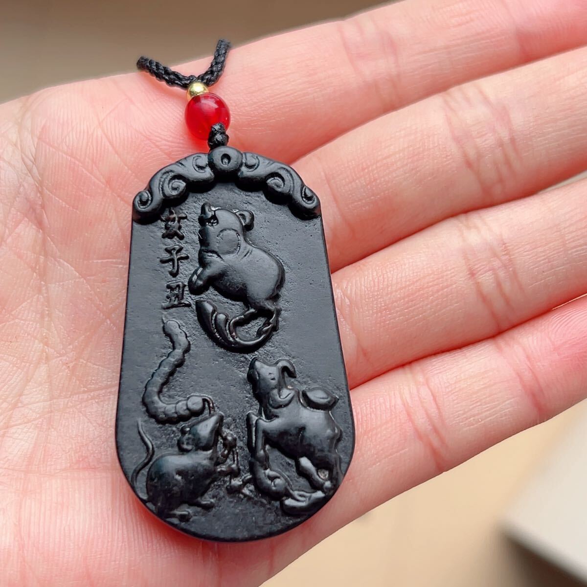 ◇和田玉・墨玉◇ヒスイ◇ネックレス◇ペンダント◇生肖 鼠・豚・牛 彫刻◇天然石◇パワーストーン◇巾着袋付き◇プレゼントに021p2110