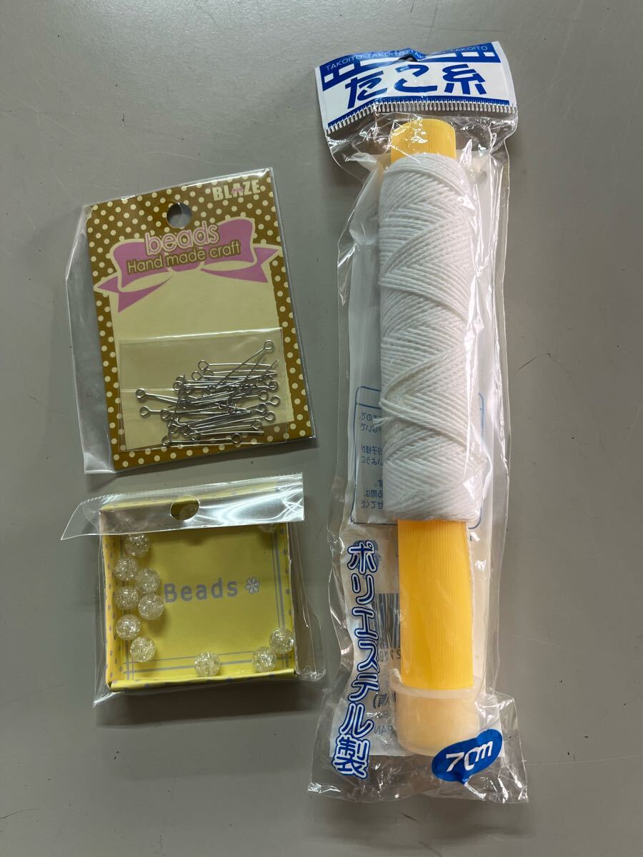 たこ糸、ヒビガラス(クリスタル)×13個、9ピンセット(0.5×20mm)×35本