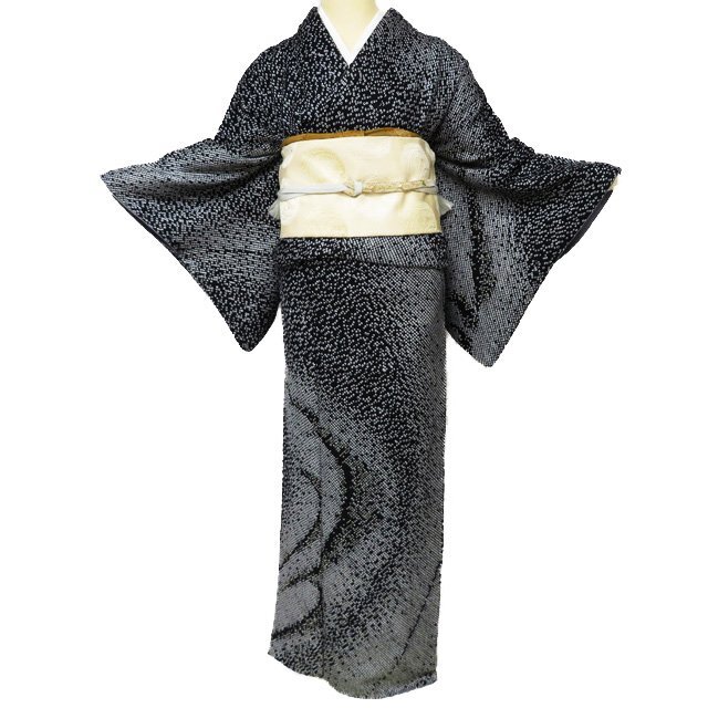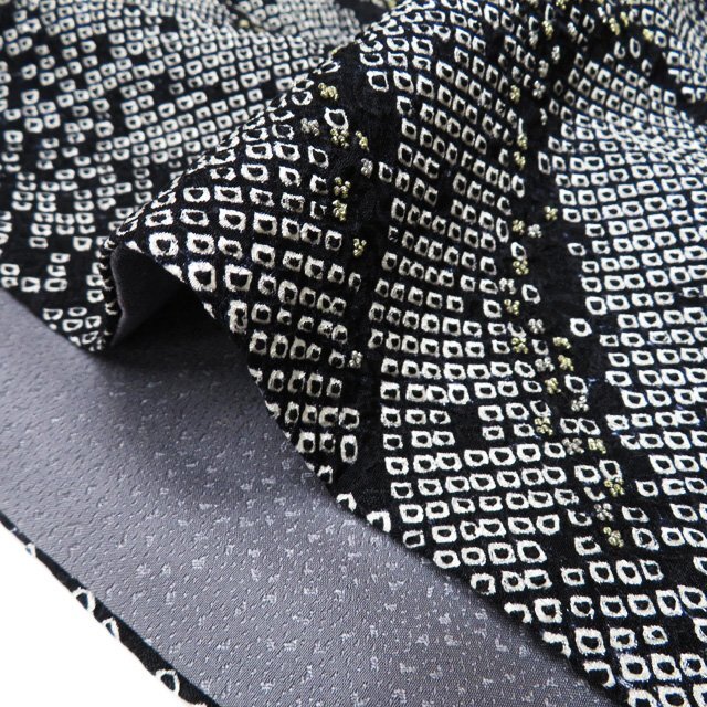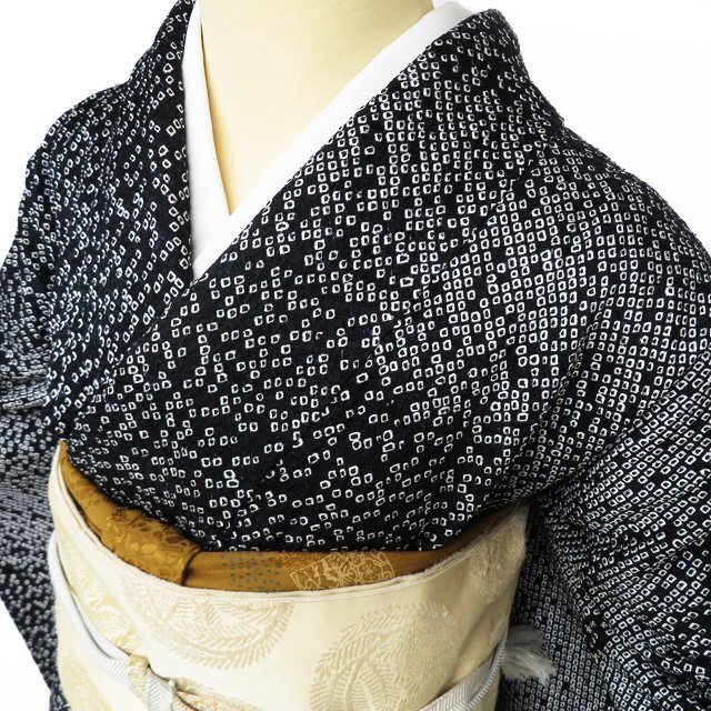 丈161.5cm(+12) 裄68cm(+5) 袖丈46cm(+5.5) 前幅29.5cm 後幅33cm ※サイズのお直し、承ります。 (身丈のみ、身幅のみのお直しは承っておりません) ※身丈は肩から測っております。 ※()内は※()内の数字はお直しで直せる長さを示しています。お仕立て直しの場合は胴裏を付け替えるため、さらに長く直せる場合があります。詳しくはお問い合わせください。 単位:cm 素材 正絹 商品ランク C ●着用時期 10月~5月(+-2週間) ●着用シーン 披露宴、パーティー、お出掛け、式典など ●お色 黒色 白色 胴裏(お尻部分)に裂け、袖口(内)に少しシミがございますが、まだまだご着用いただけるお品物です。 写真に写っている着物のみの販売で帯等の付属品はついておりません。 一部商品は実店舗・他サイトでも並行して販売しておりますので売り切れの際はご了承ください。 その他多数販売中 de- | ||||||