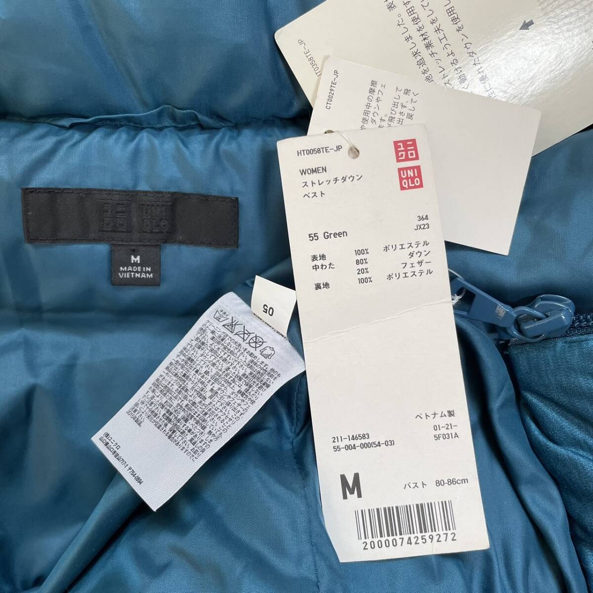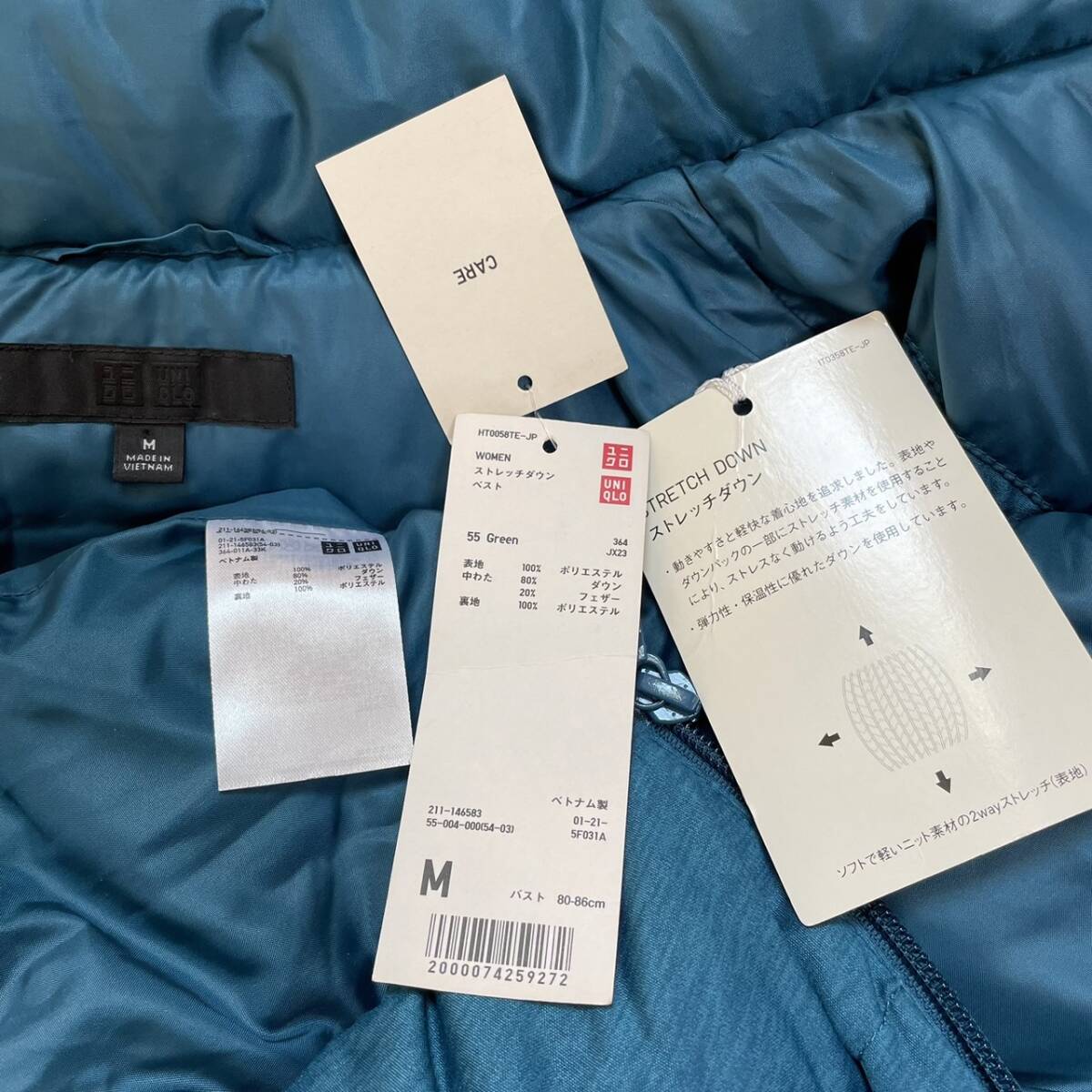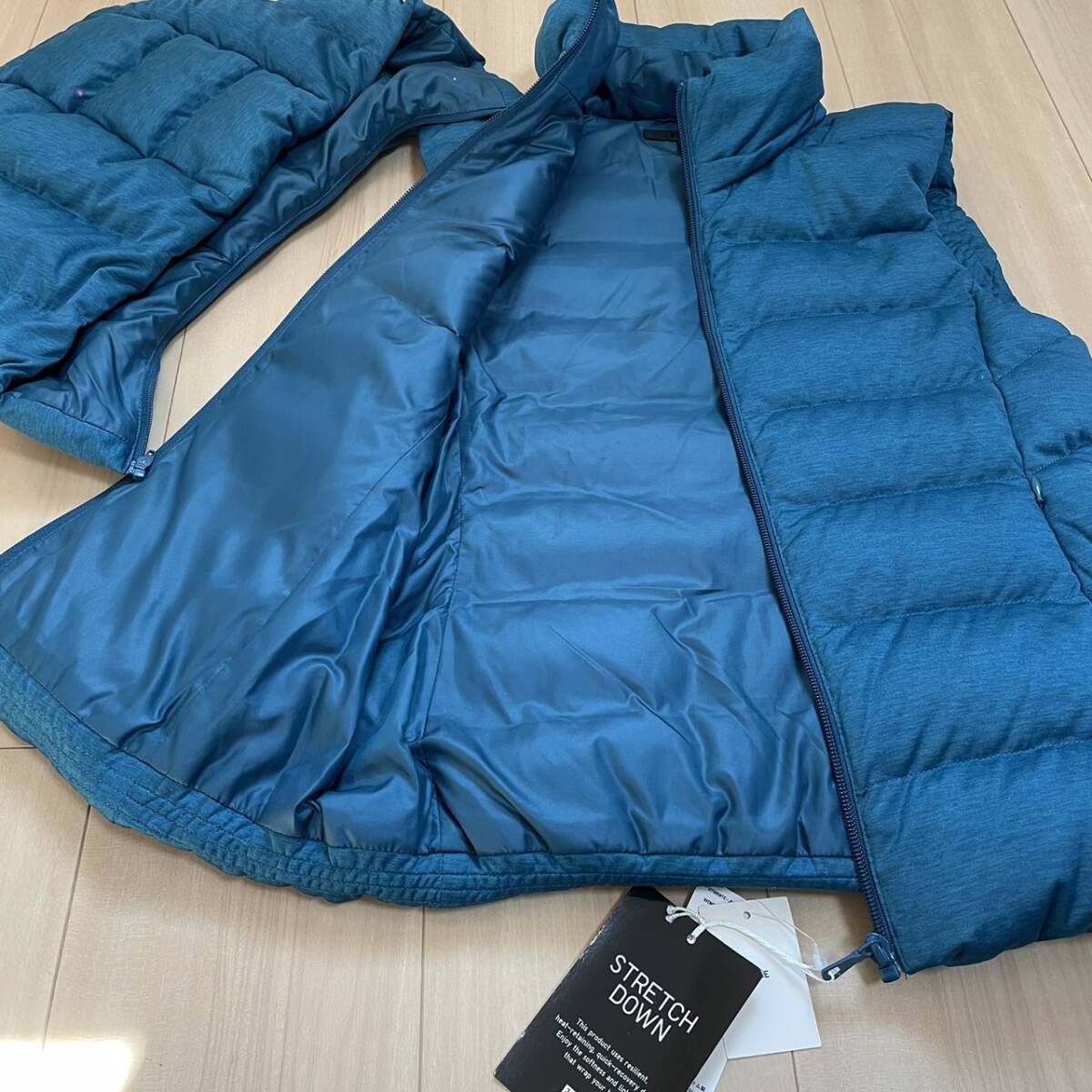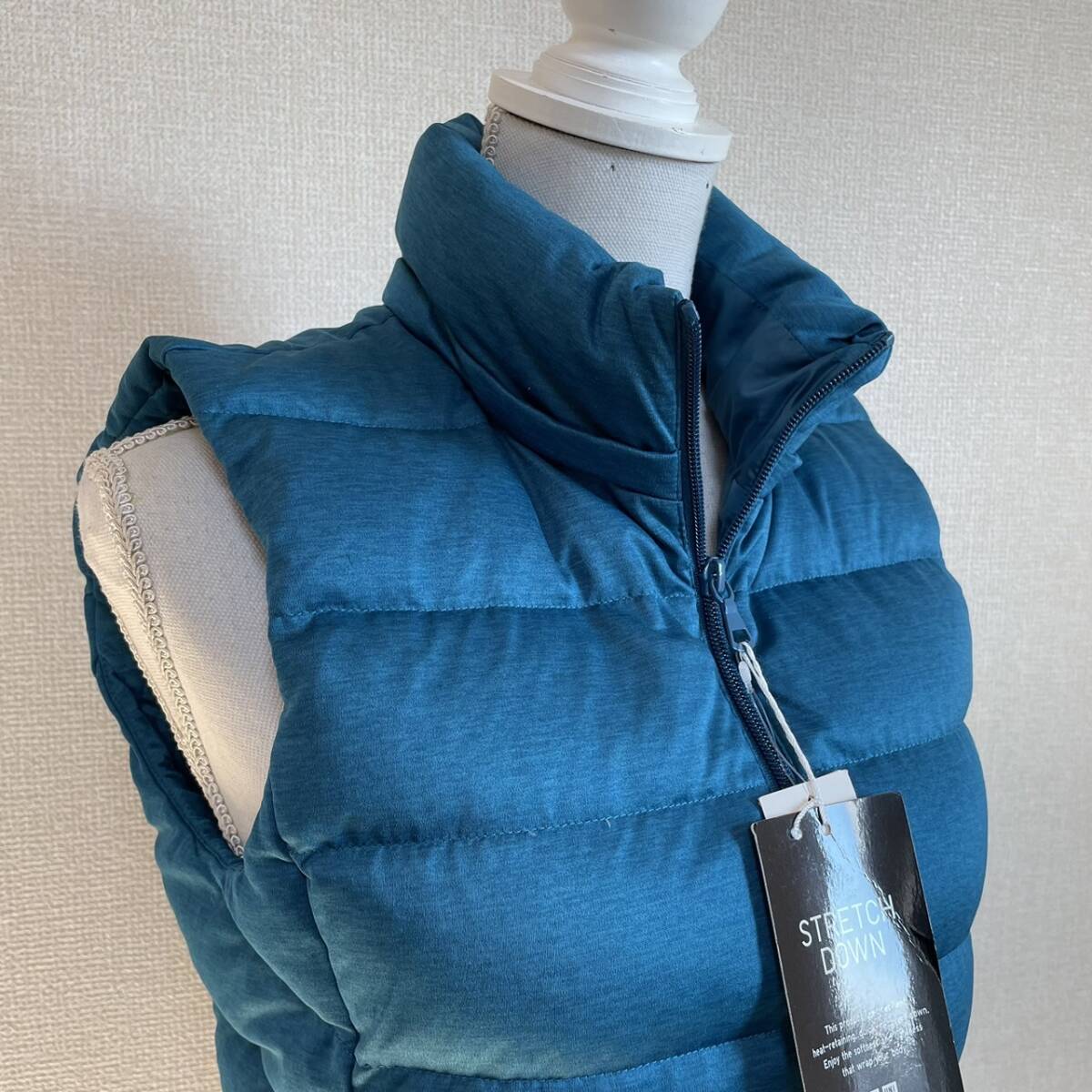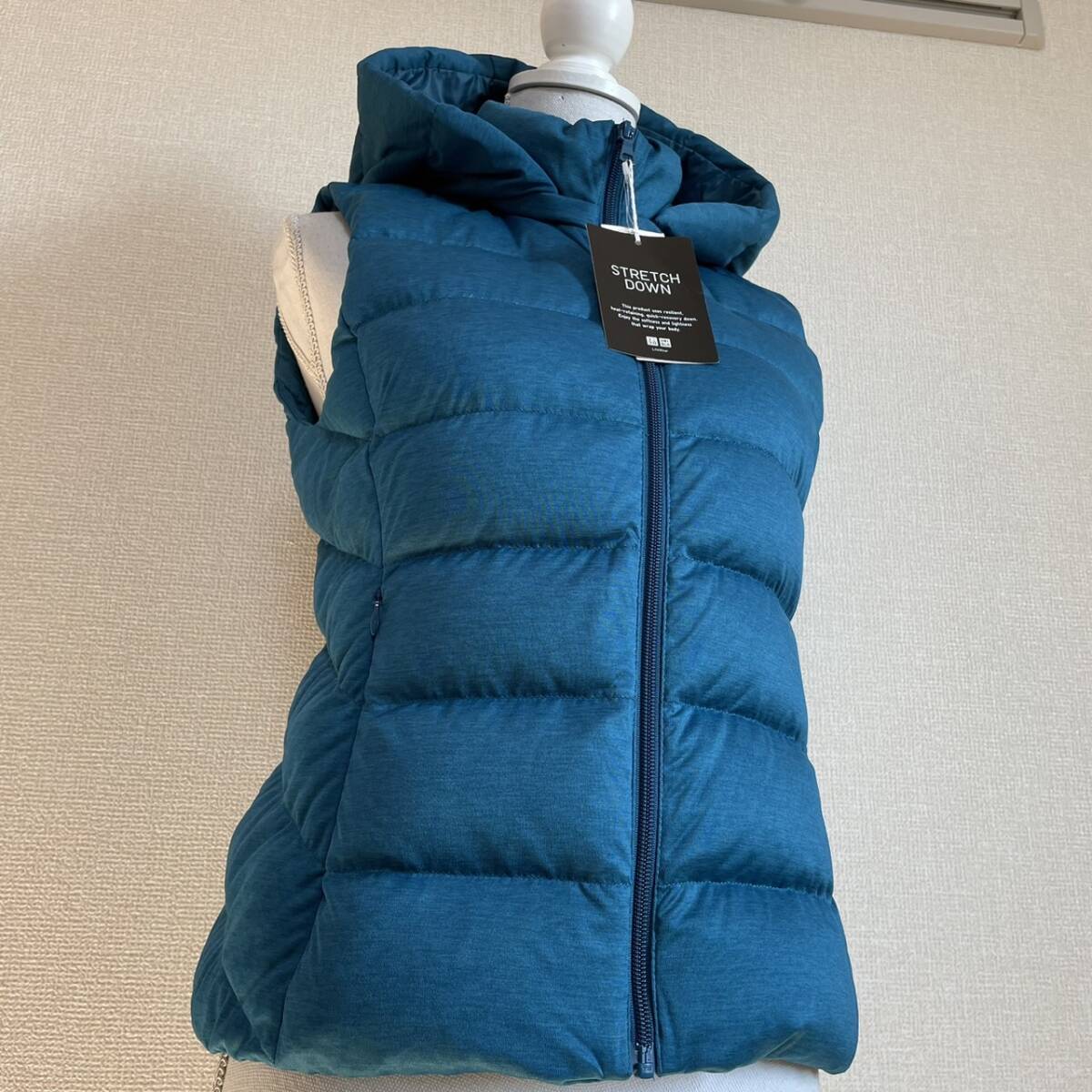 新品 ユニクロ UNIQLO グリーンブルー系 ダウンベスト M 美品 秋冬