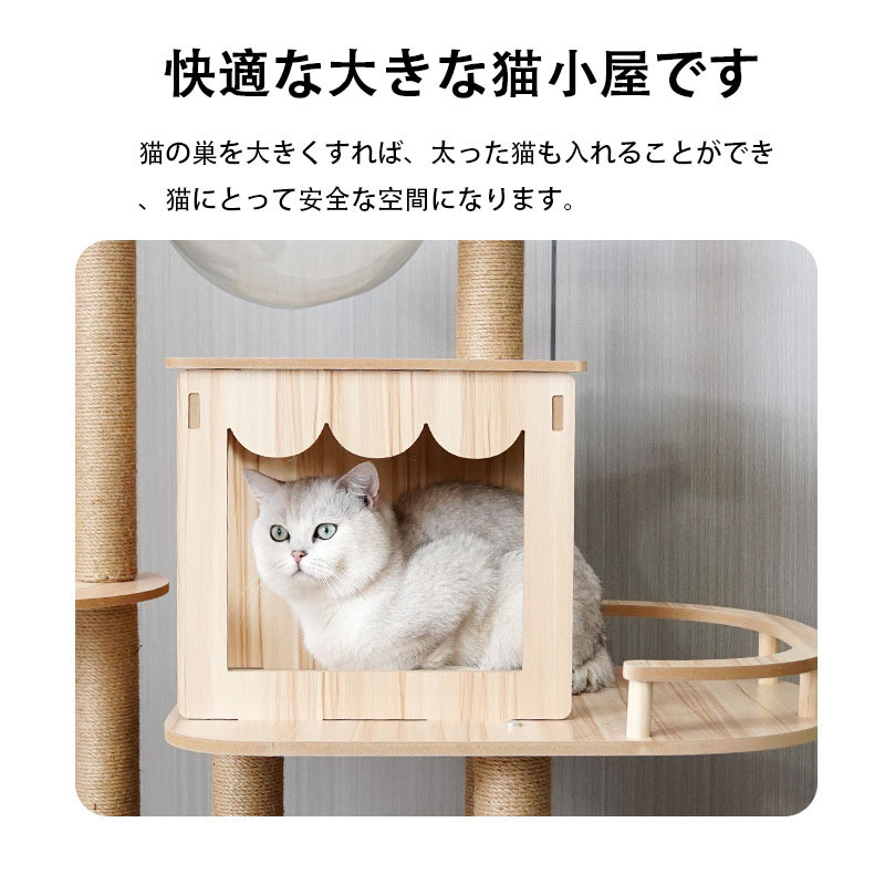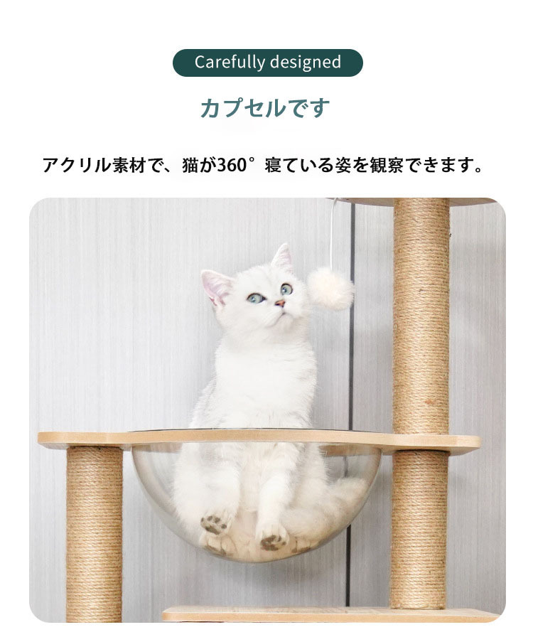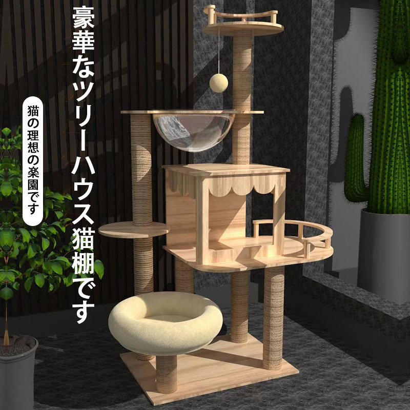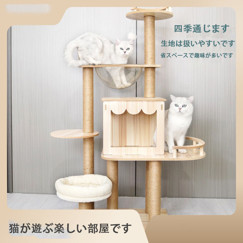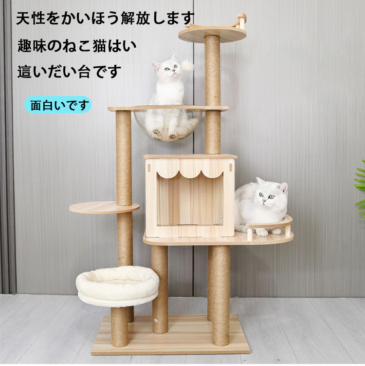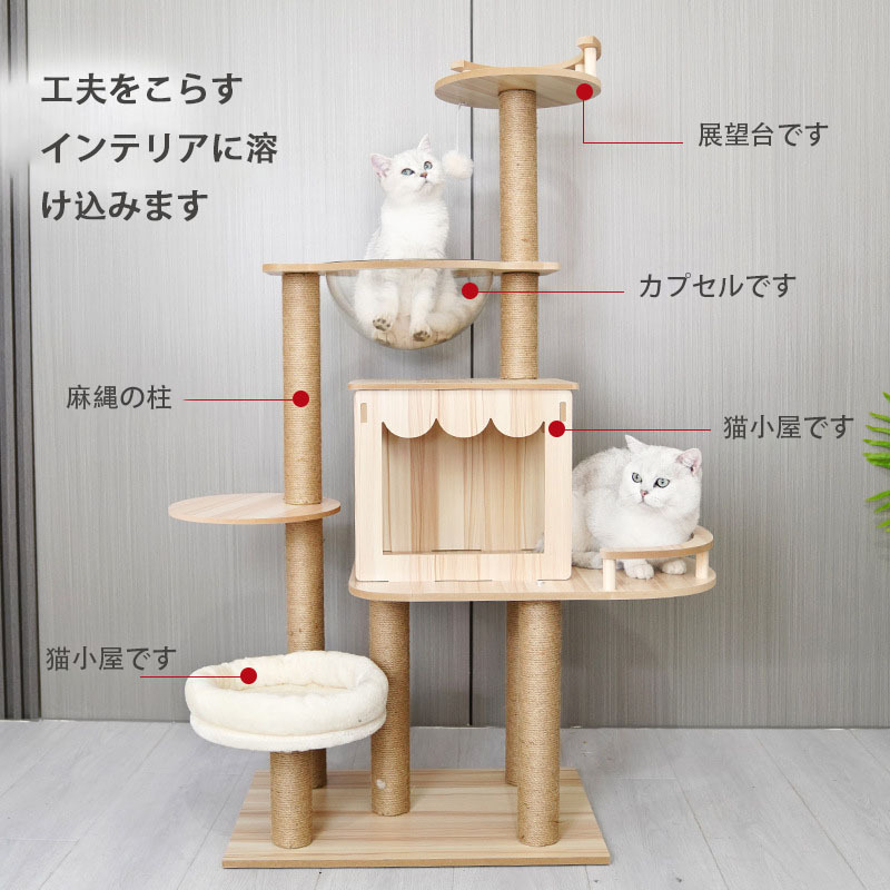 キャットタワー ねこタワー 木製 据え置き型 猫タワー おしゃれ 大型猫 透明宇宙船 安定性 猫ハウス ネコ 支柱 階段設計 高い安定性