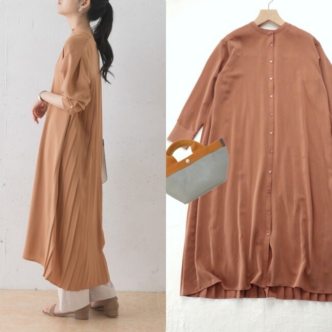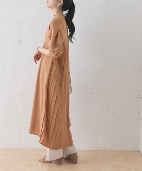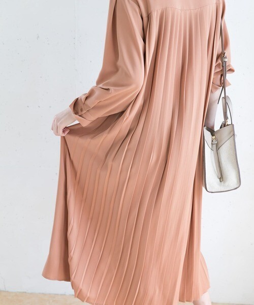 バックにあしらったプリーツデザインがすてきなワンピースです。