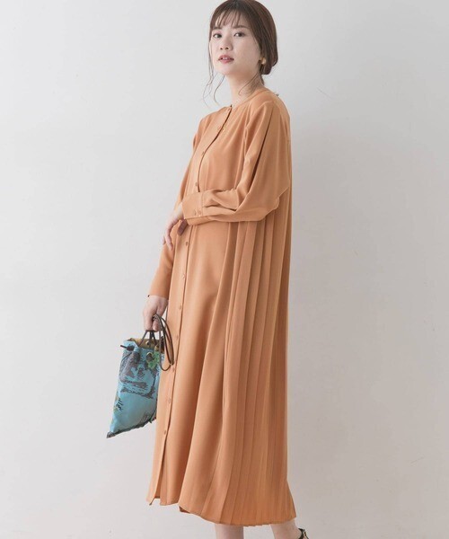 【送料無料】美品* アーバンリサーチ ロッソ|くすみカラー♪バックプリーツワンピース (URBAN RESEARCH ROSSO )