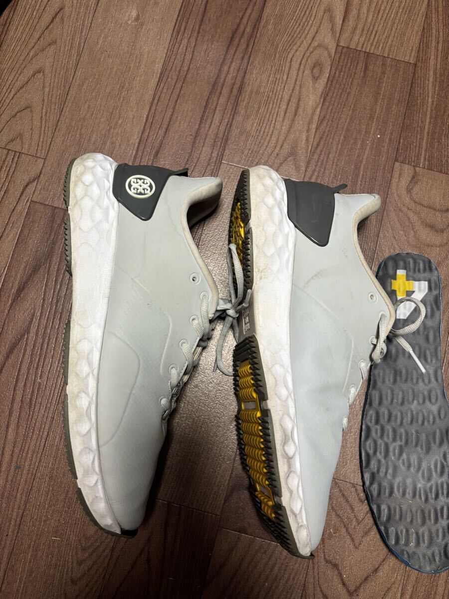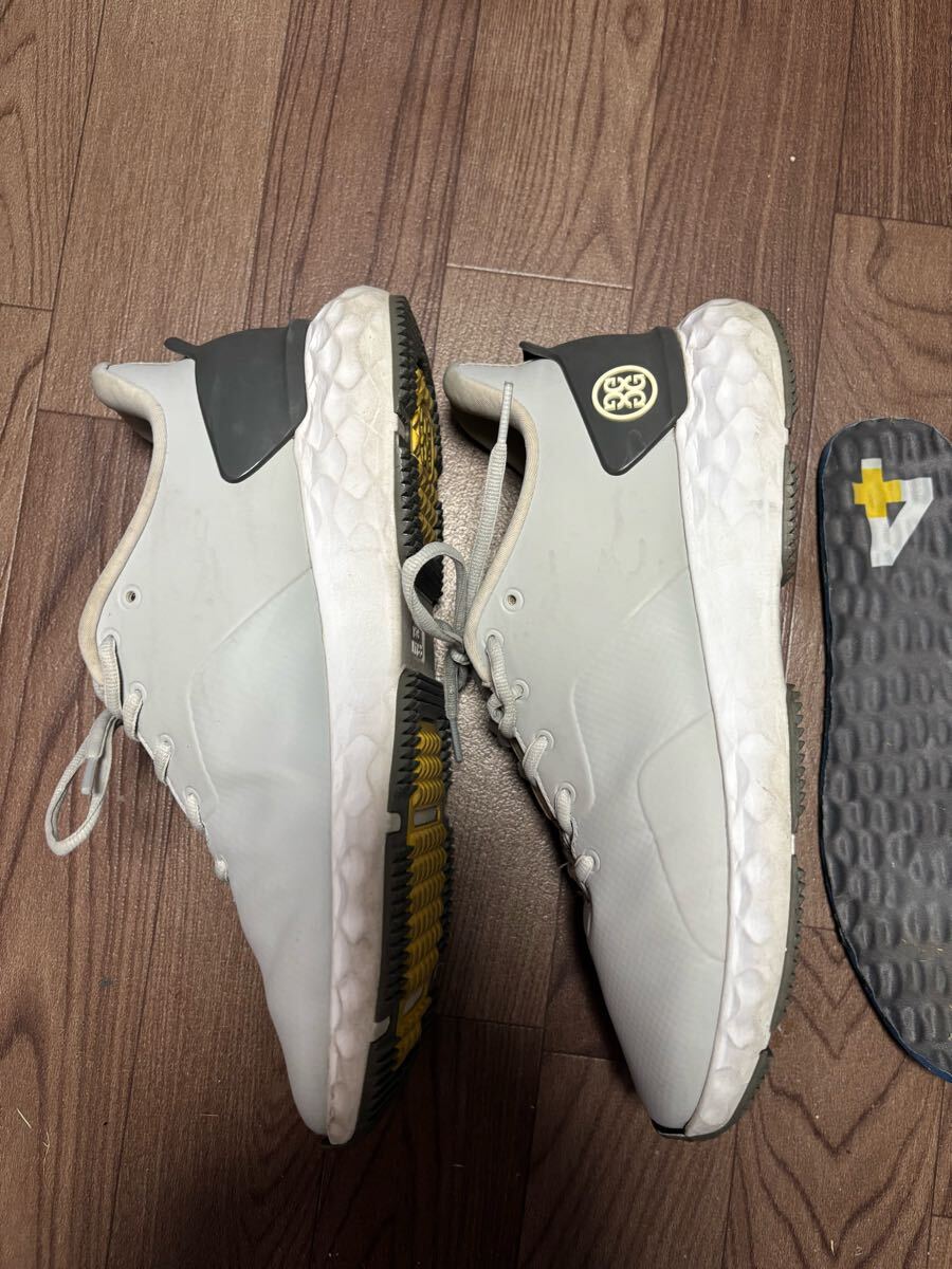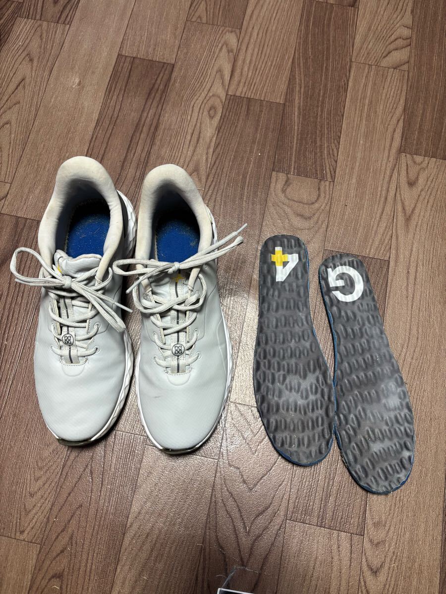 ジーフォアのグレーゴルフシューズです。サイズは27センチです。中敷きは取り外しできます。