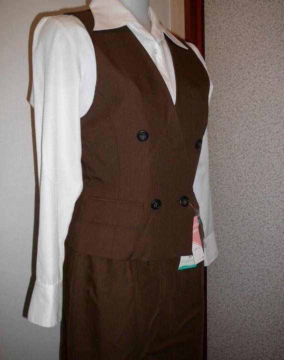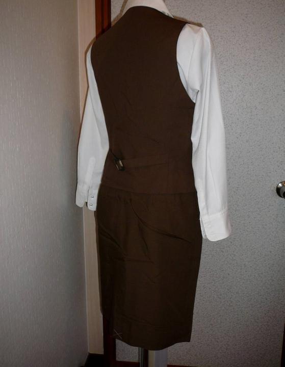 ご覧のダークブラウン色のベストスーツです(ベストとスカートの2点)